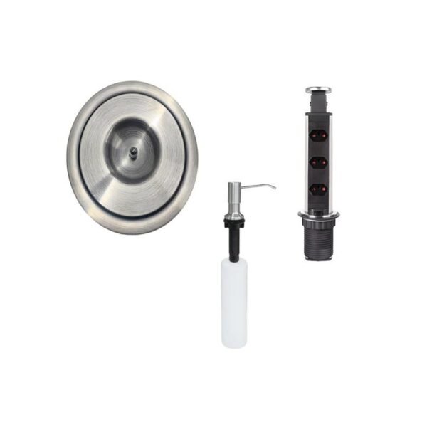 Kit Lixeira Embutir 5L + Torre de Tomada + Dosador Inox