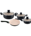 Jogo De Panelas Alumínio Antiaderente 8 Pçs Tampa De Vidro
