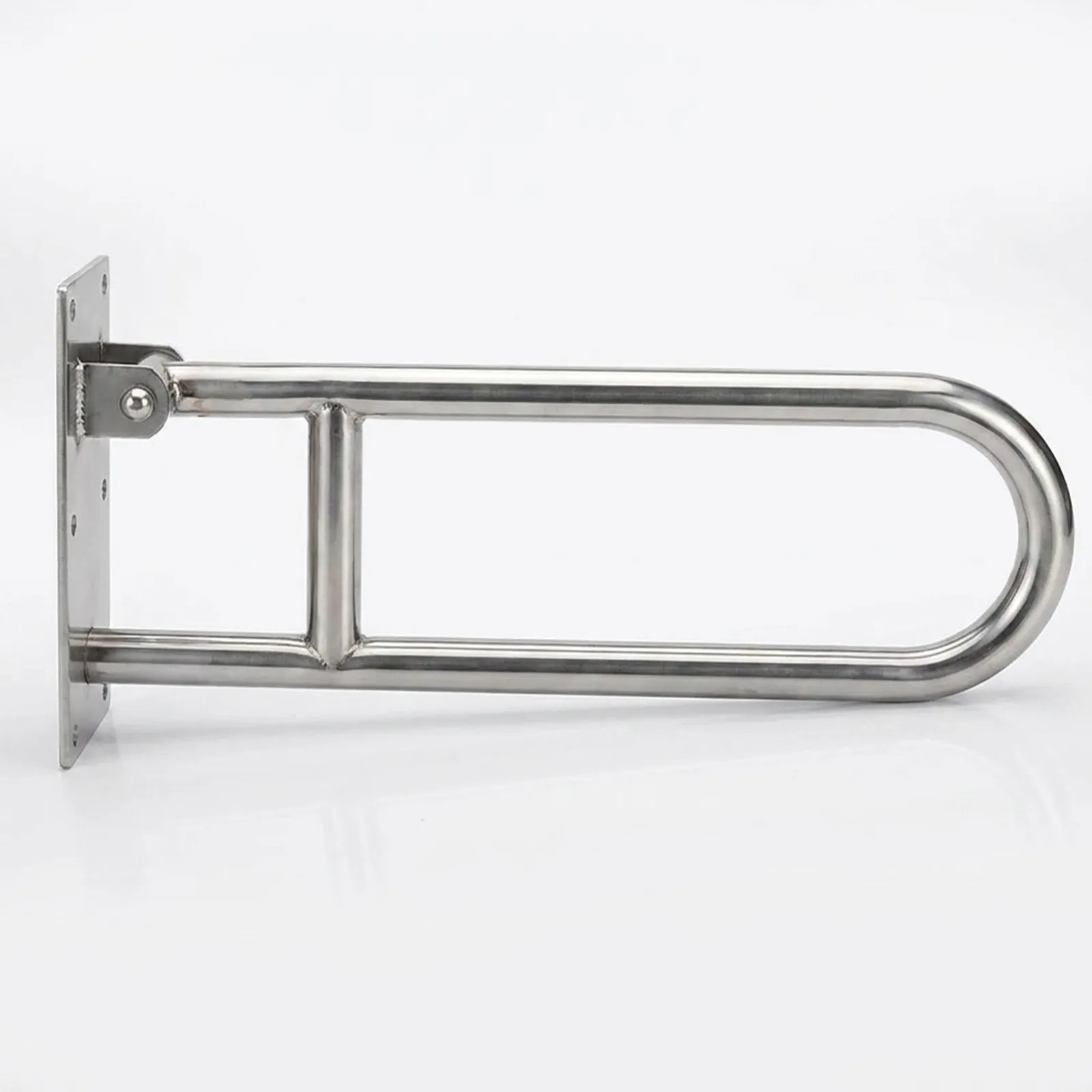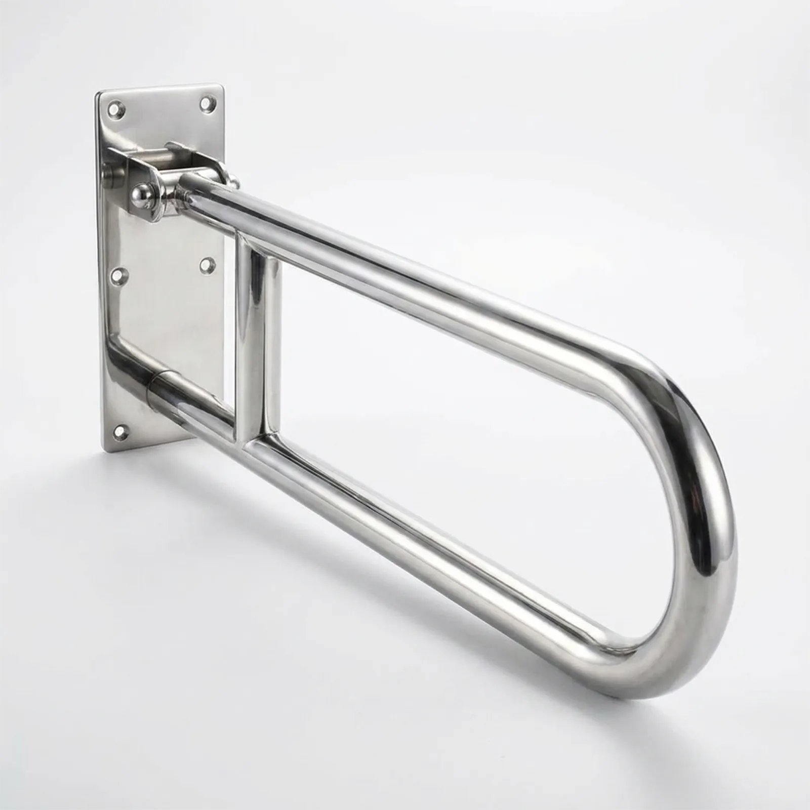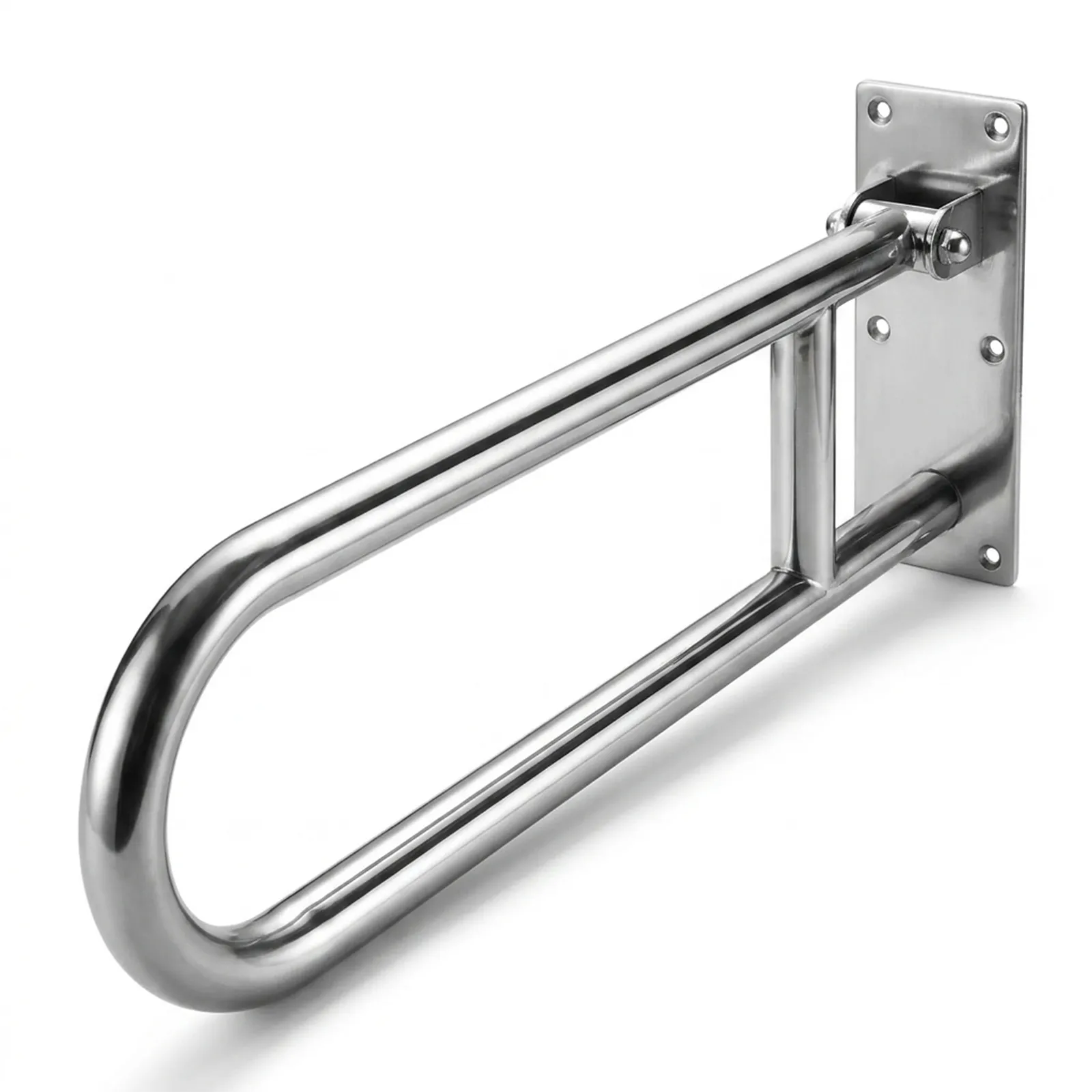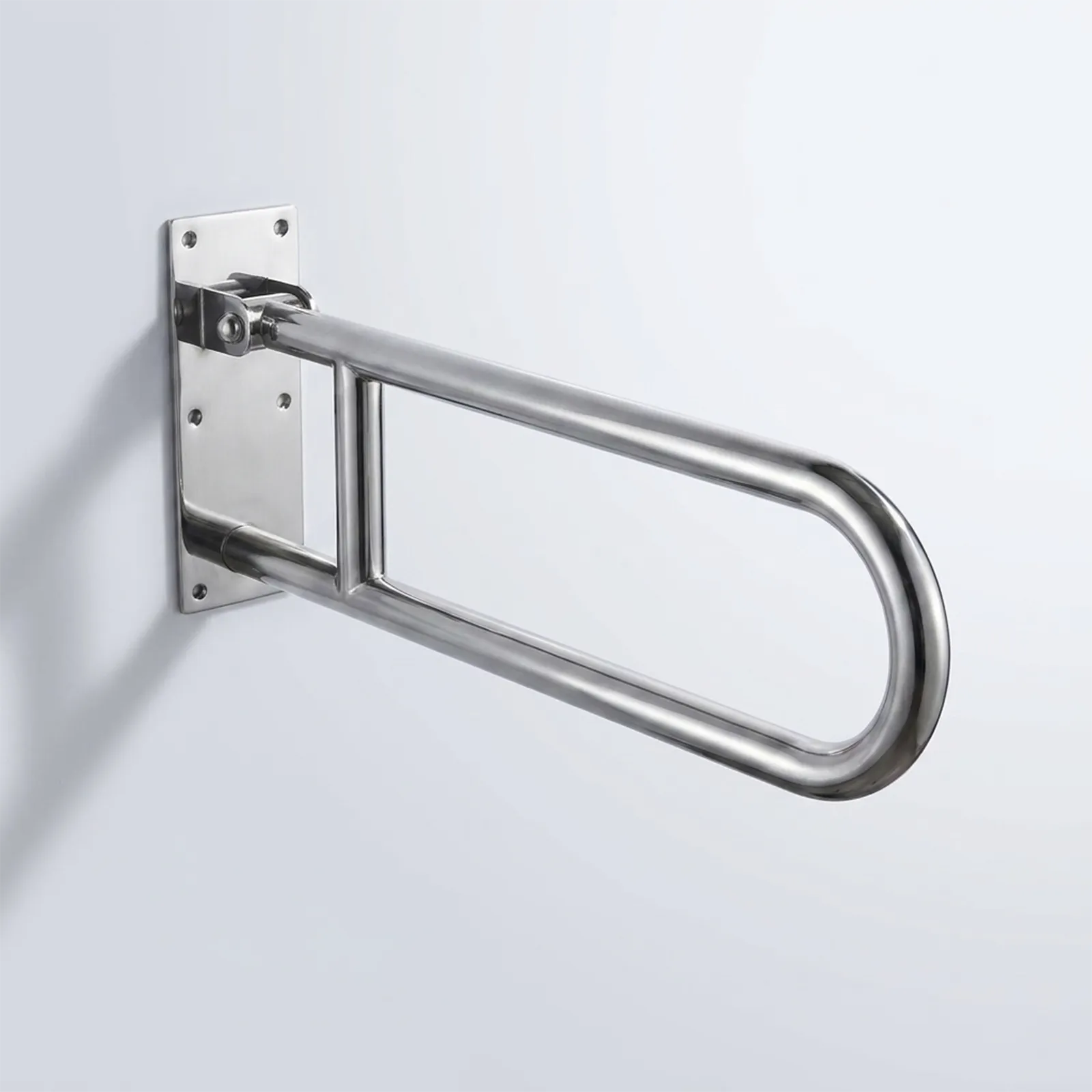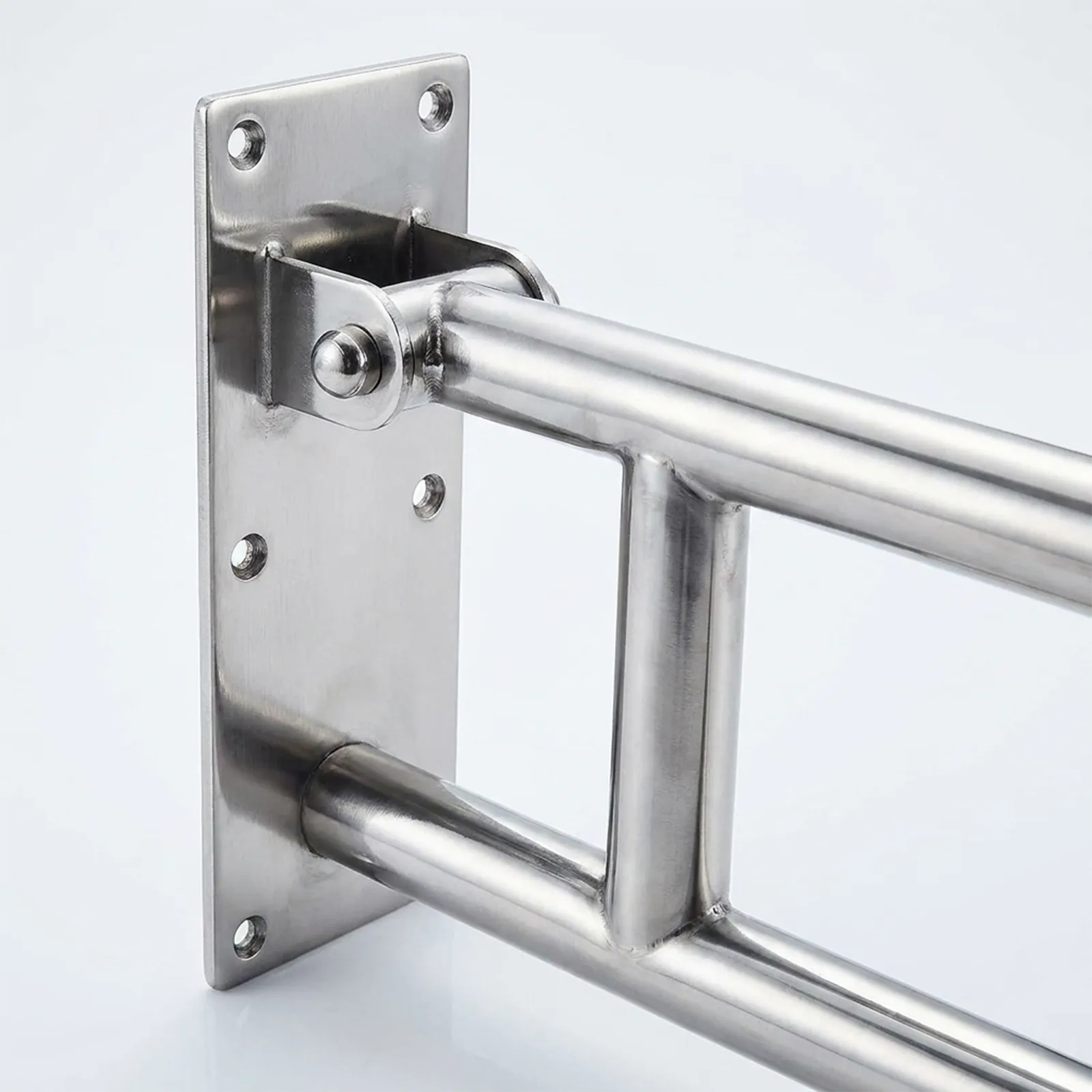 Barra de apoio articulada em inox para mais segurança e acessibilidade no banheiro.