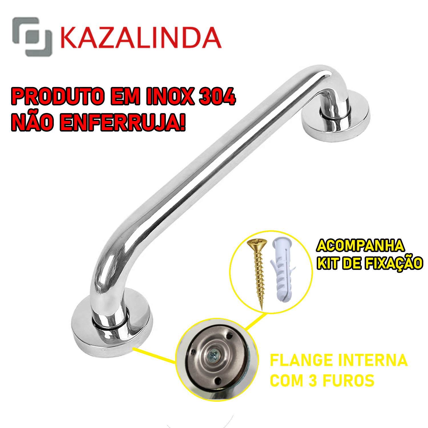Barra de apoio em Aço Inox 304 Kazalinda 60cm