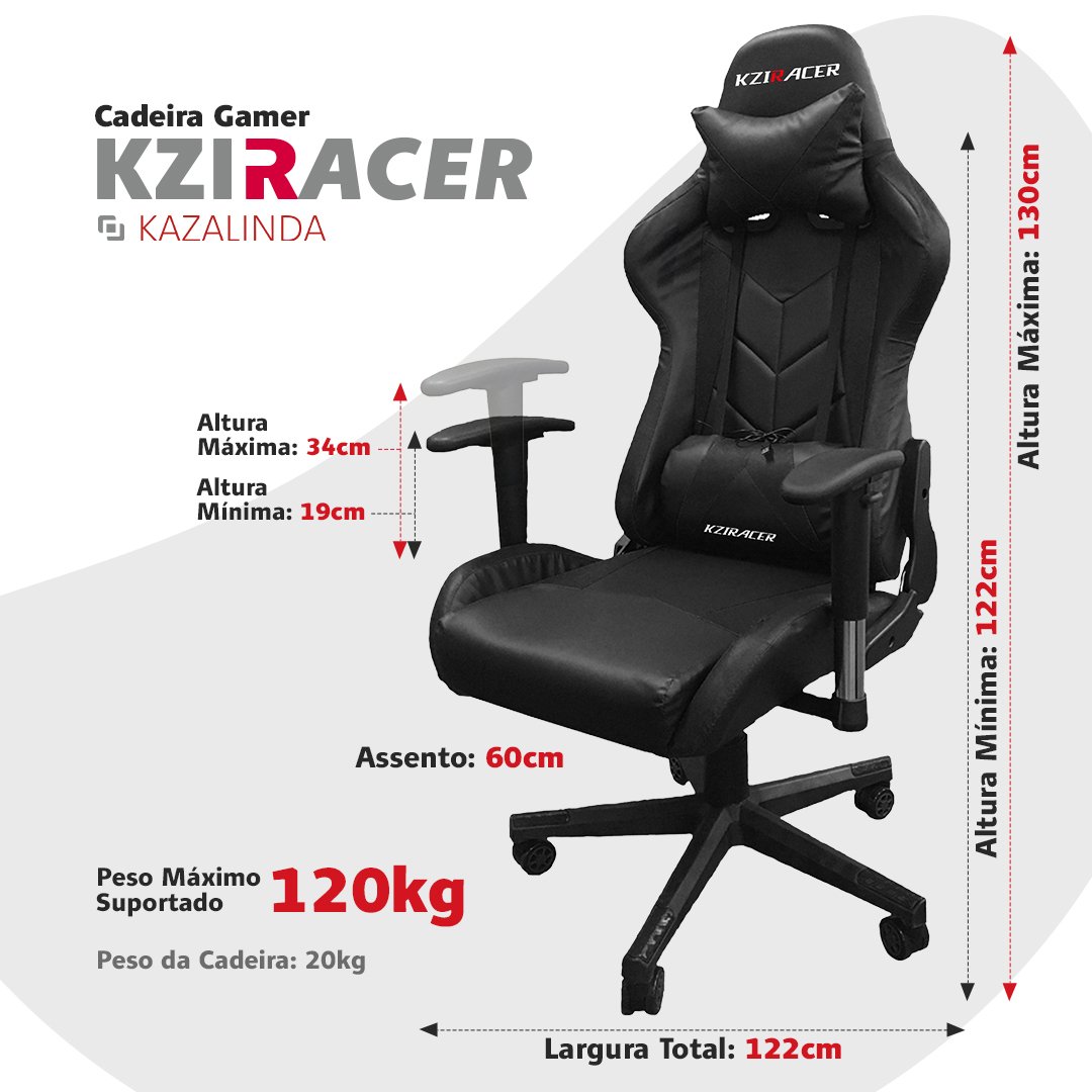 Cadeira Gamer KZI Ergonômica com Massageador Reclinável 180º Giratória Suporta 120kg