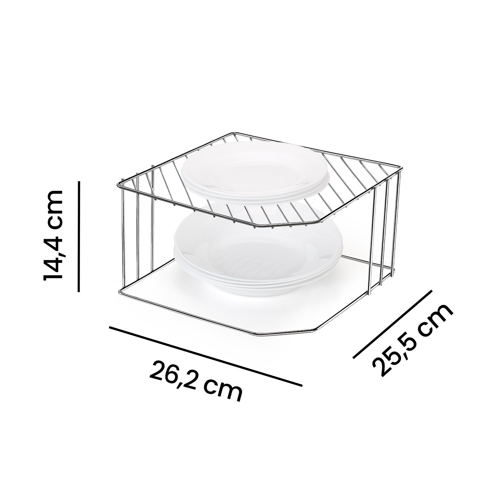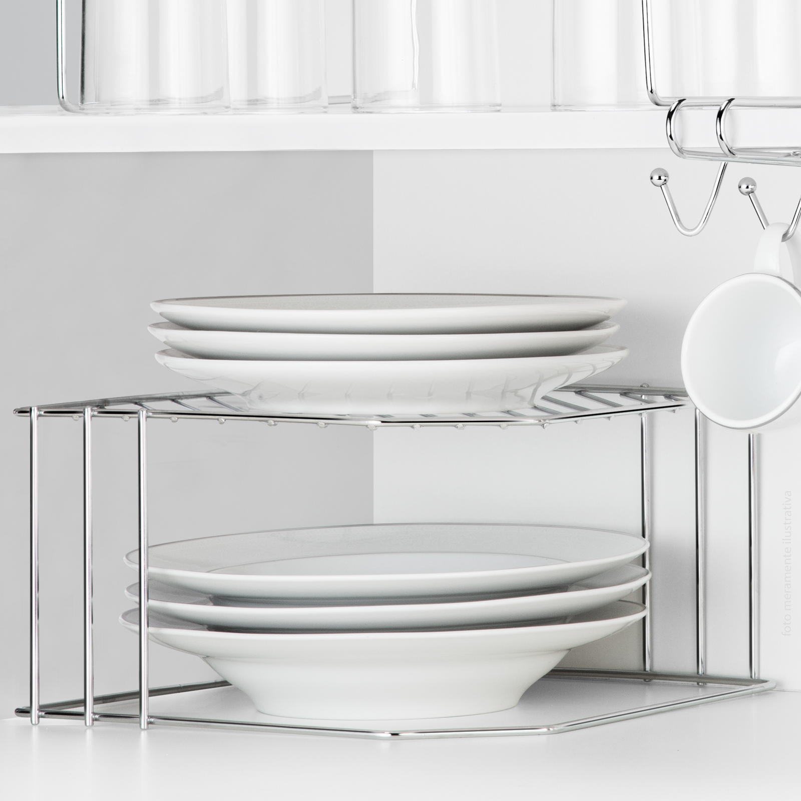 - Organização Vertical: Cria um segundo nível de prateleira de apoio, ideal para organizar itens de diferentes alturas.