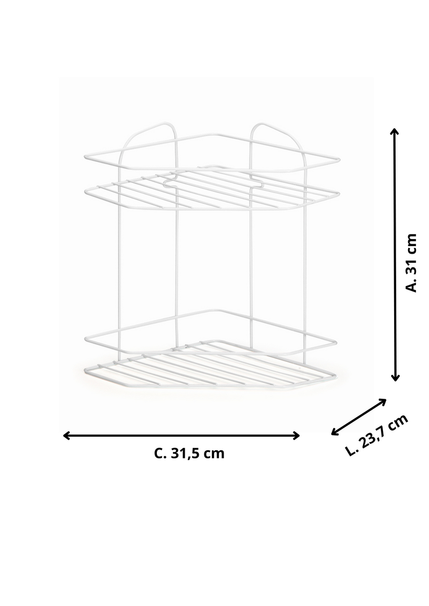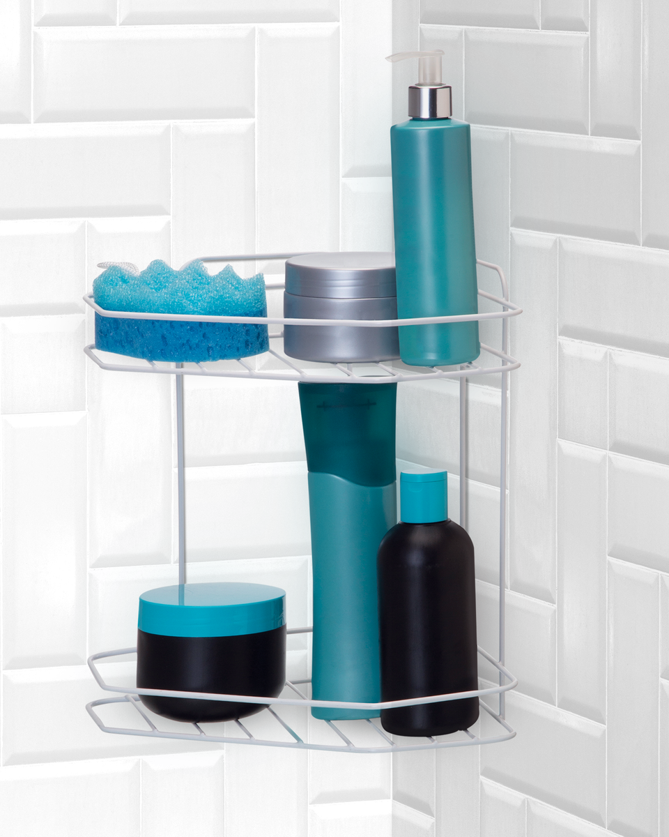 Capacidade: Possui dois cestos ou andares para organizar múltiplos itens de higiene pessoal (shampoos, condicionadores, sabonetes, etc.).