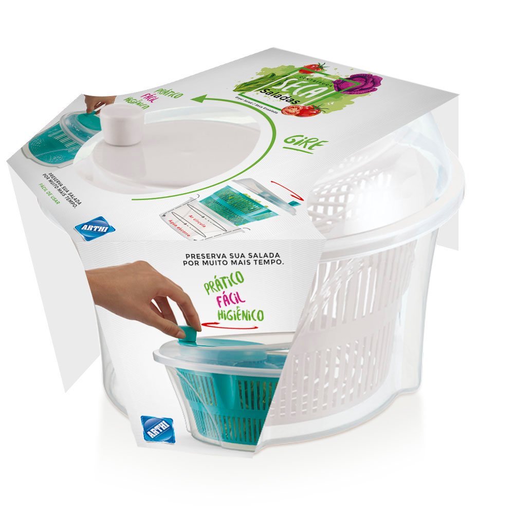 A Centrífuga Seca Salada da Arthi (Ref. 5022) é uma ferramenta indispensável para quem busca uma alimentação mais saudável e prática. Ela remove o excesso de água das folhas e alimentos rapidamente, garantindo que a salada fique crocante e fresca por muito mais tempo.