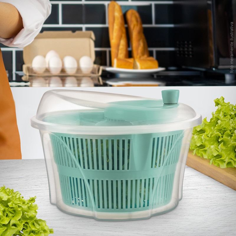 - Uso Multiuso: Embora seja ideal para saladas e verduras, é também indicado para secar outros alimentos como legumes, frutas, carnes e peixes após a lavagem.