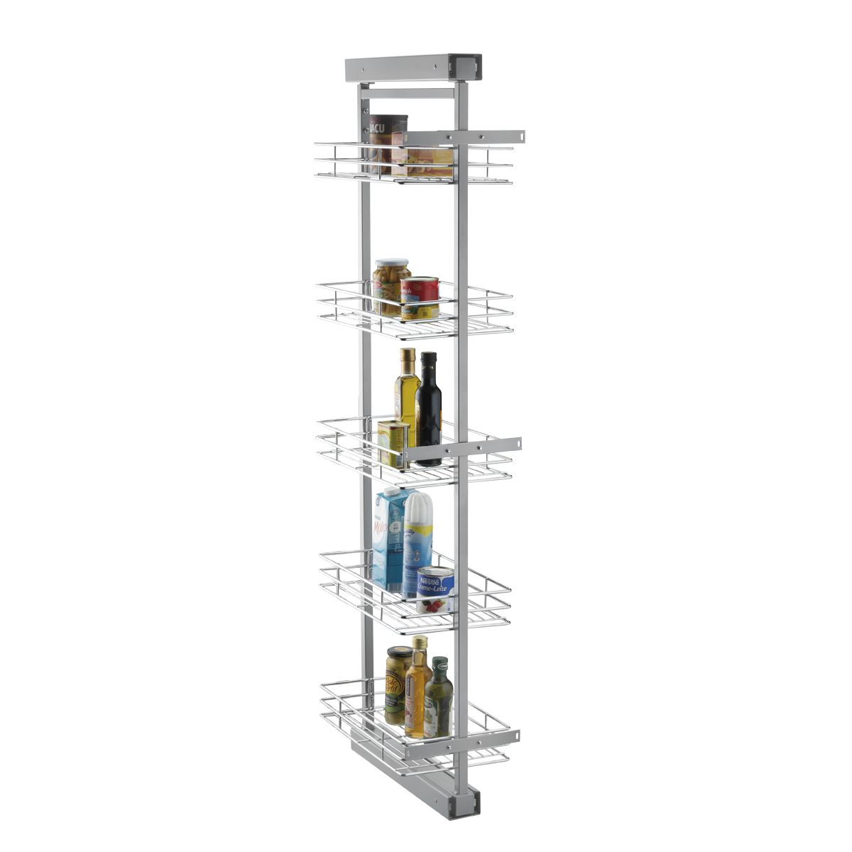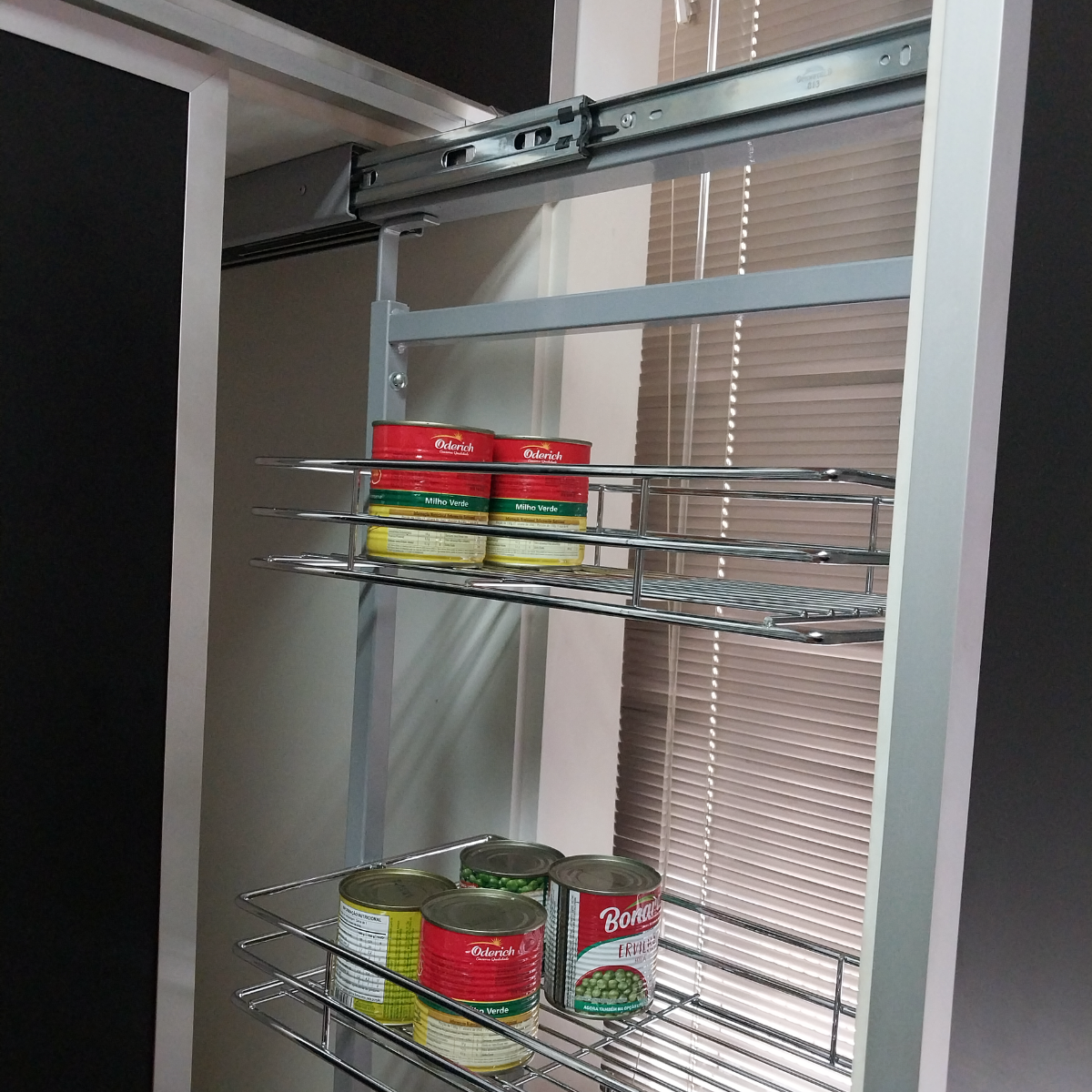 A Coluna Deslizante é ideal para organizar e otimizar espaços na cozinha. Ela possui cestos amplos para guardar condimentos ou utilidades, tornando a visualização mais ampla e agregando mais facilidade no dia a dia.