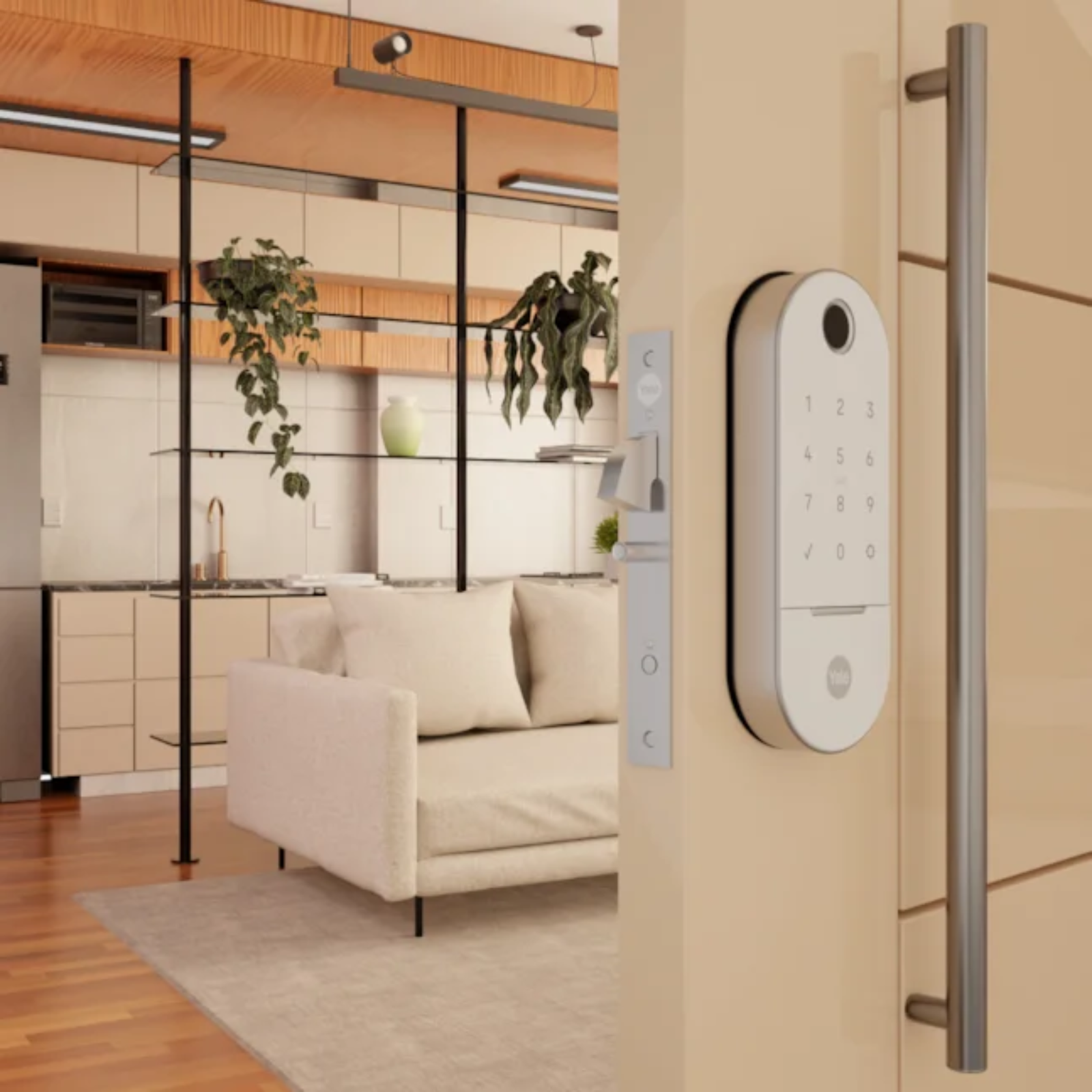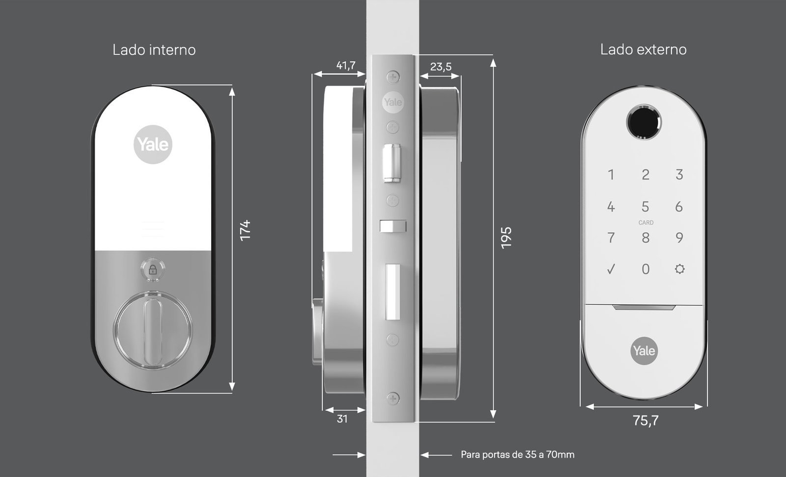 Combo Fechadura Digital Yale Lia BP: Segurança inteligente e conectividade total para portas de correr. Biometria, senha, app e Alexa.