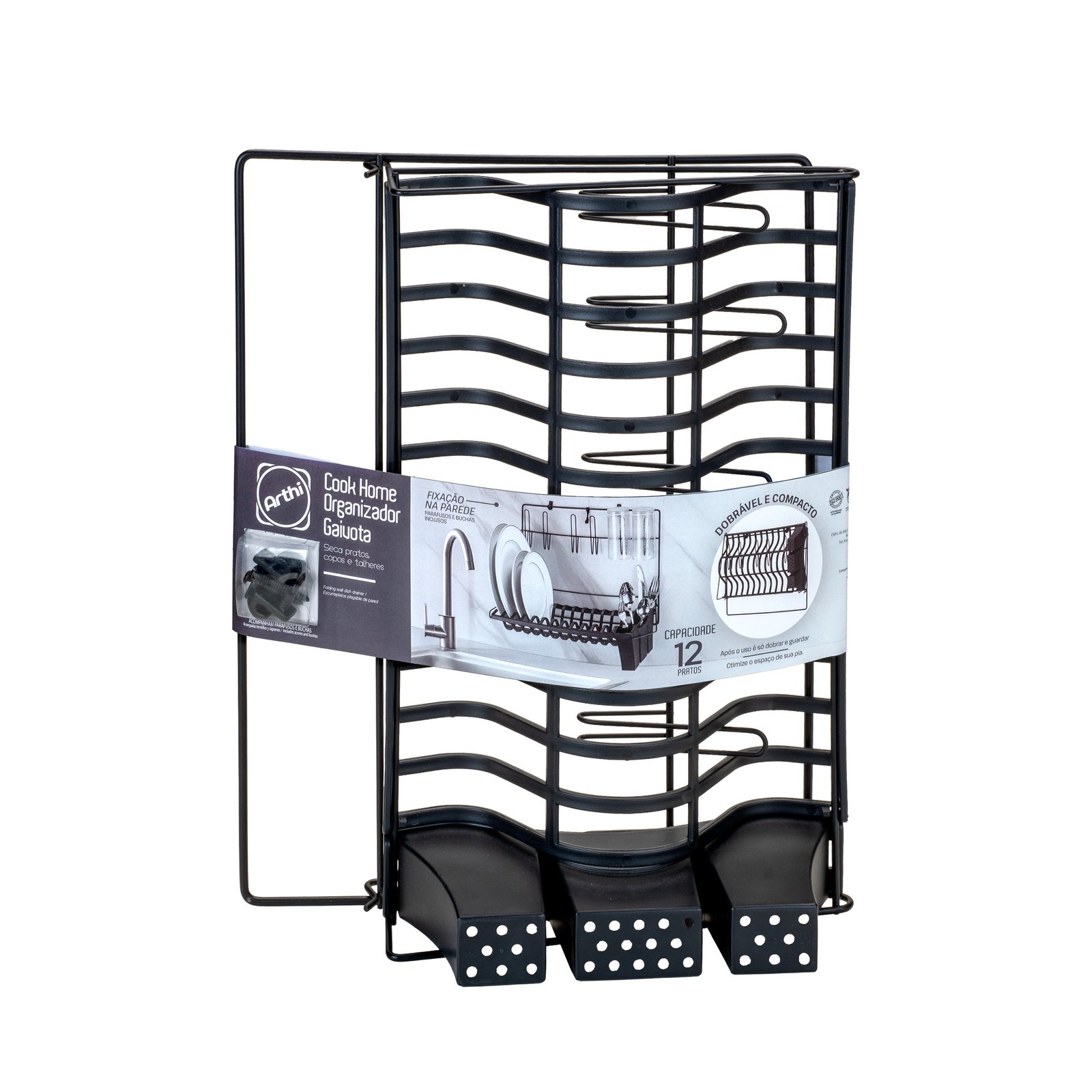 O Escorredor de Louças Cook Home Gaivota da Arthi, linha Black, é a solução perfeita para quem precisa de alta capacidade de secagem e organização vertical na bancada. Seu design de dois andares (“Gaivota”) otimiza o espaço, permitindo secar pratos, copos e utensílios simultaneamente, com o toque sofisticado do acabamento preto moderno.
