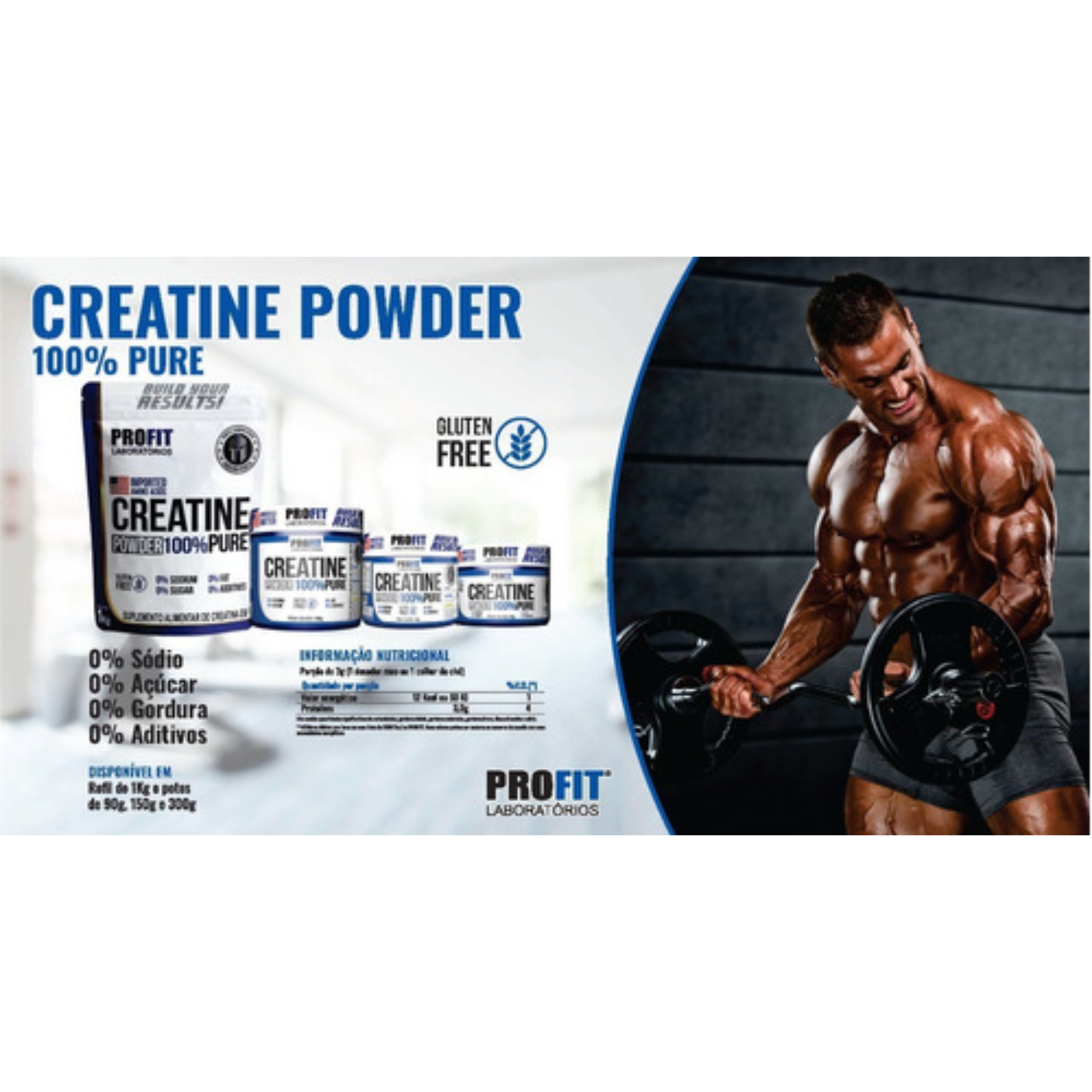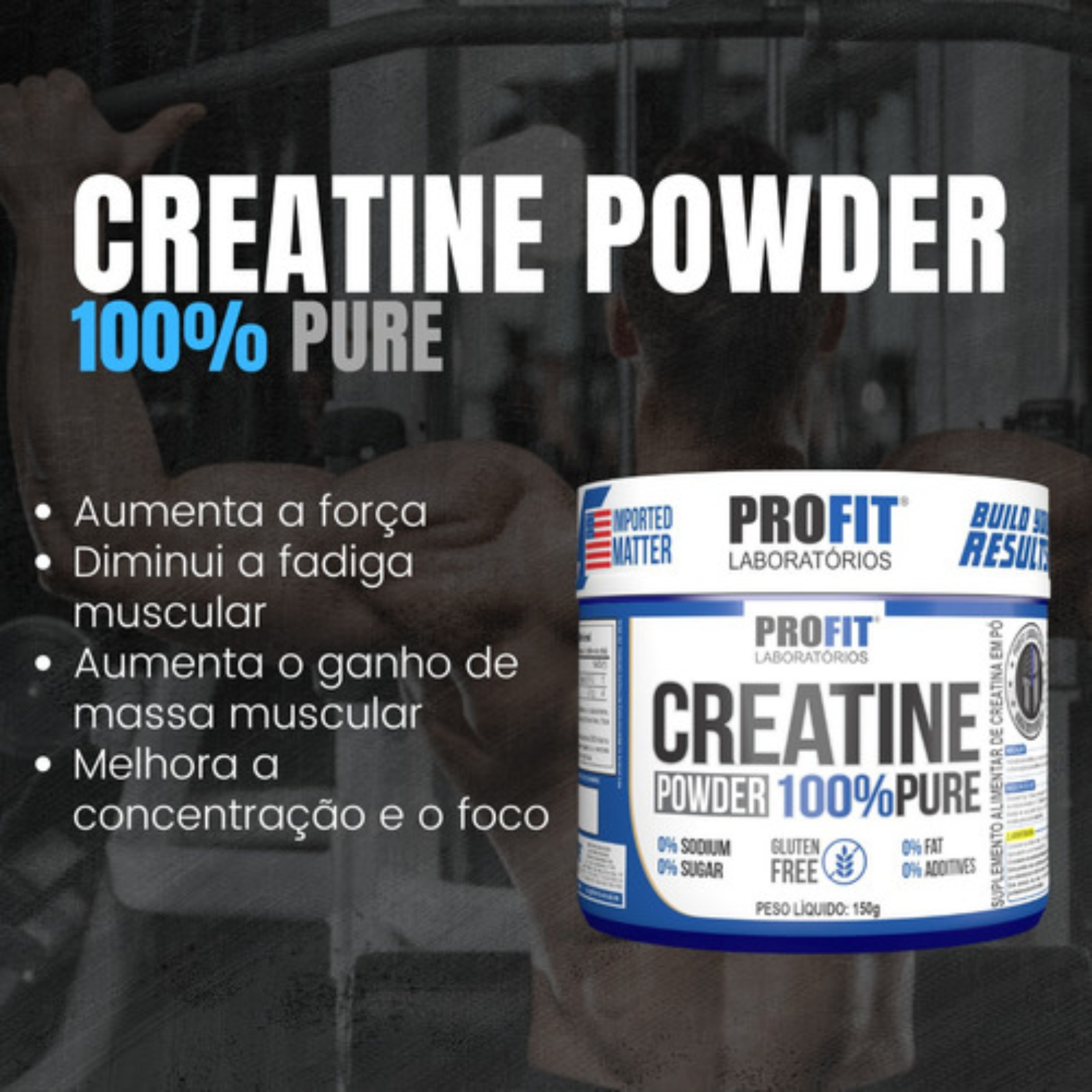 Creatina Pure 100% Pura Profit 150g Monohidratada Importada – Ganho de Força e Massa