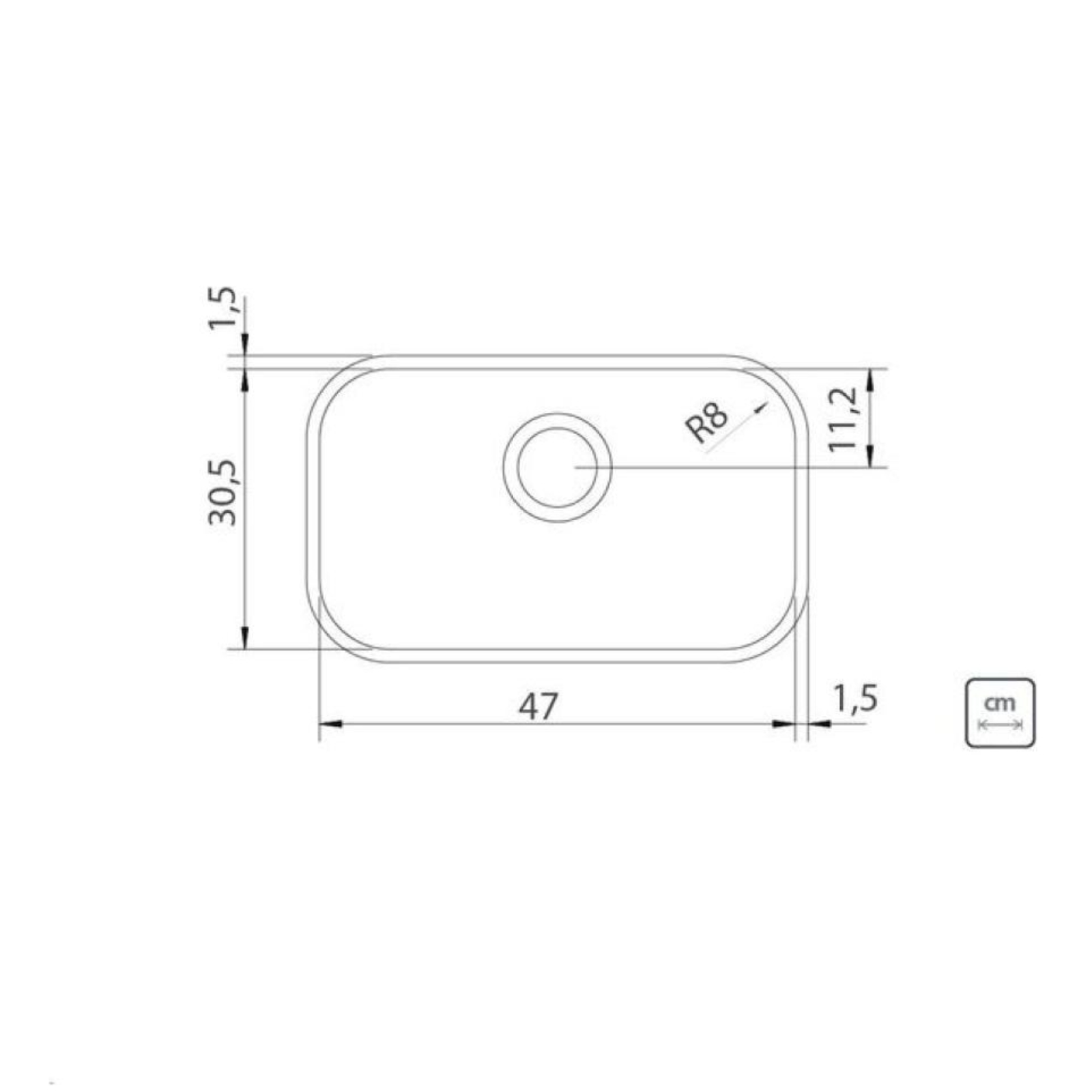 Possui bordas lisas para instalação por baixo da bancada e 17 cm de profundidade.