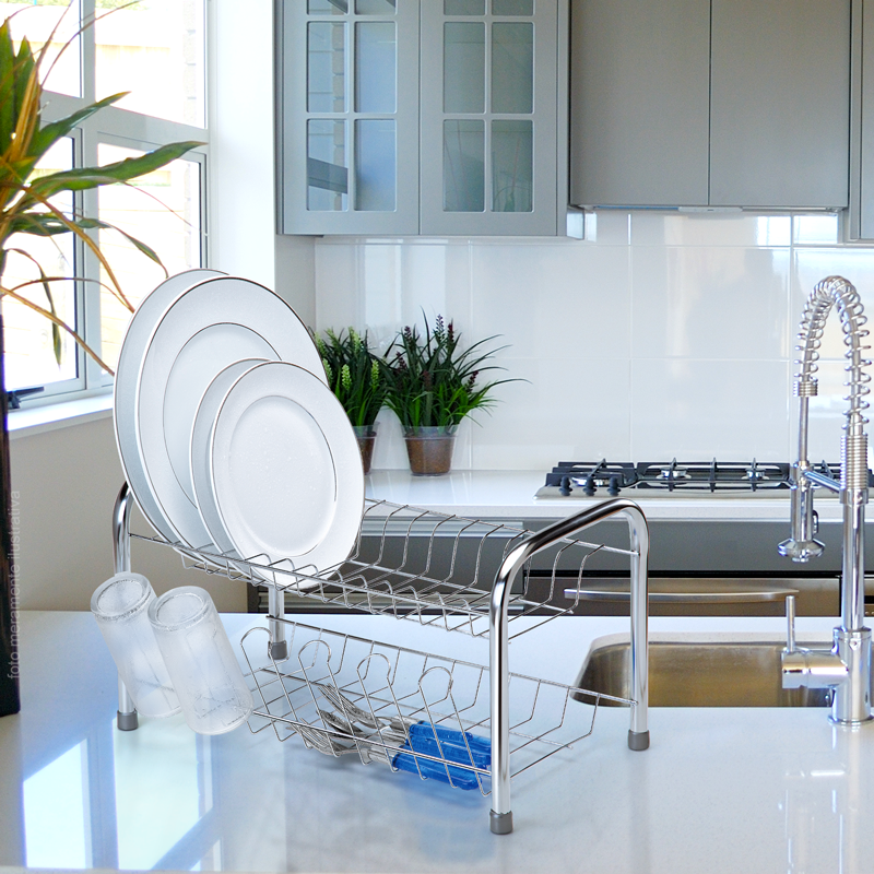 Com capacidade ideal para a rotina diária, este escorredor mantém seus pratos e copos secos e visíveis, facilitando o seu dia a dia.