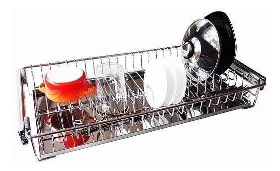 Escorredor de embutir confeccionado em aço cromado, com bandeja removível em aço inox. Acompanha trilhos deslizantes para encaixe em módulo de 70 cm, facilitando a instalação e o uso.