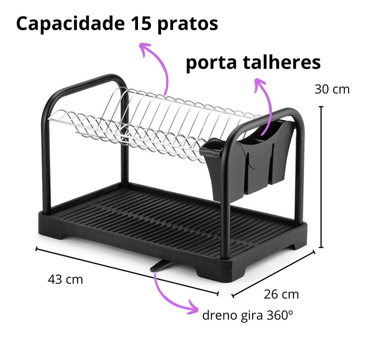 – Organização Completa: Inclui um Porta Talheres garantindo que garfos e colheres sequem de forma organizada e segura.