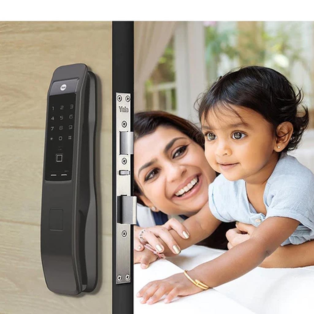 Segurança e design com a Fechadura Yale YMI 70A Push. Destrave com biometria, senha, cartão ou app. Automação e elegância para seu lar.