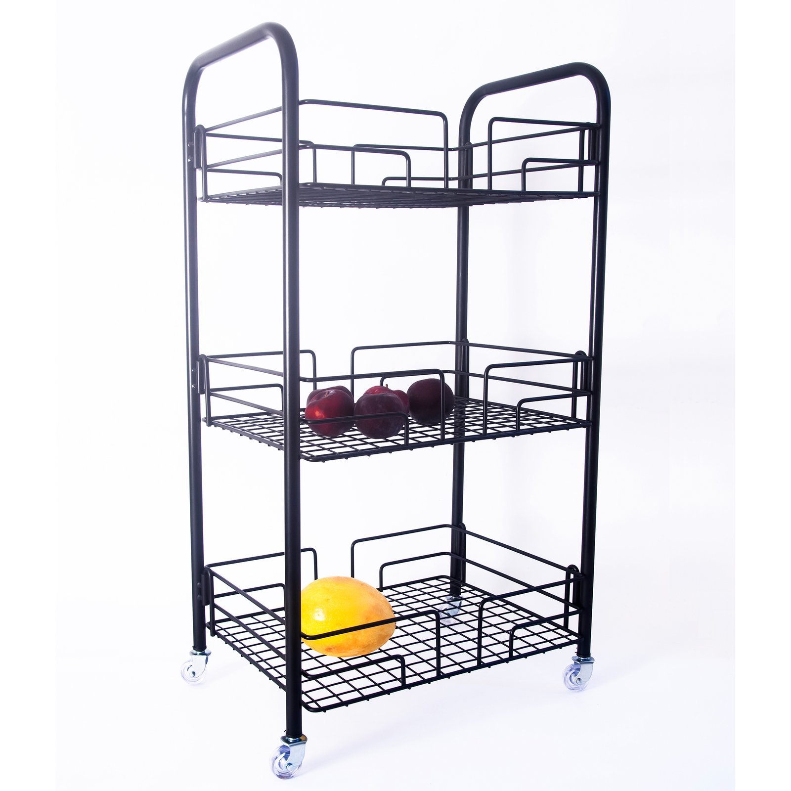 Fruteira 3 Andares Piso Chão Aramada Preto Black Jomer 2434