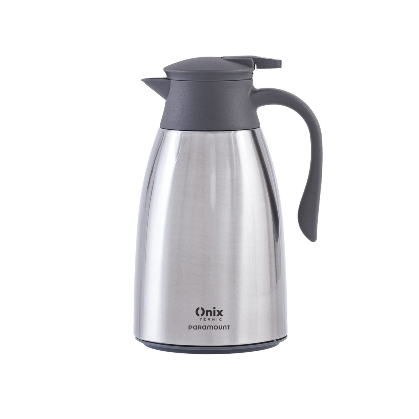 Garrafa térmica com capacidade de 1 litro, ideal para servir café, chá ou água quente/fria. Possui corpo externo em aço inoxidável resistente e ampola interna de vidro, que garante excelente conservação da temperatura. O sistema de gatilho facilita o servir, minimizando a perda de calor.