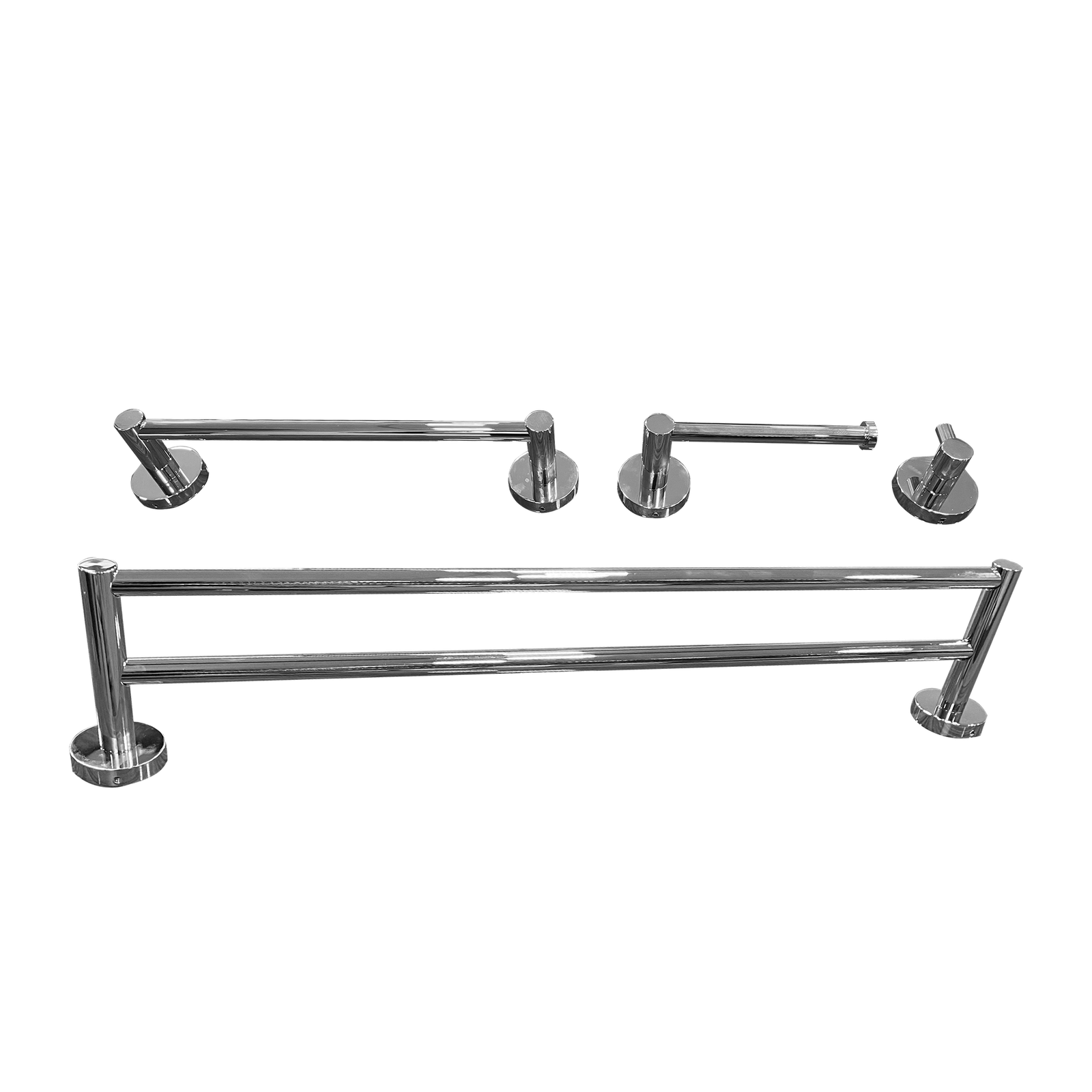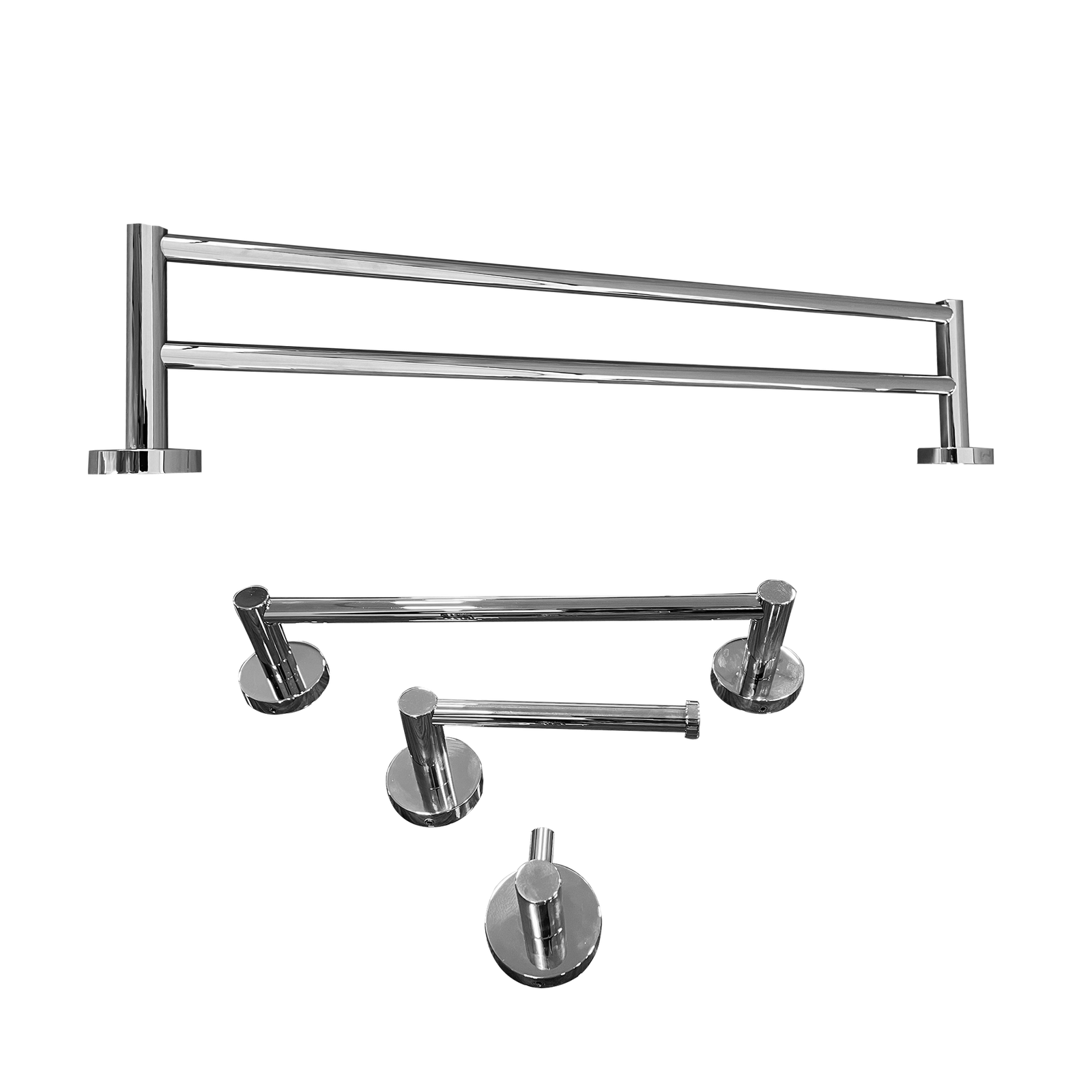 Kit 1 Papeleira 1 Cabide 1 Toalheiro Duplo 60cm 1 Toalheiro 30cm Redondo Trendmetais
