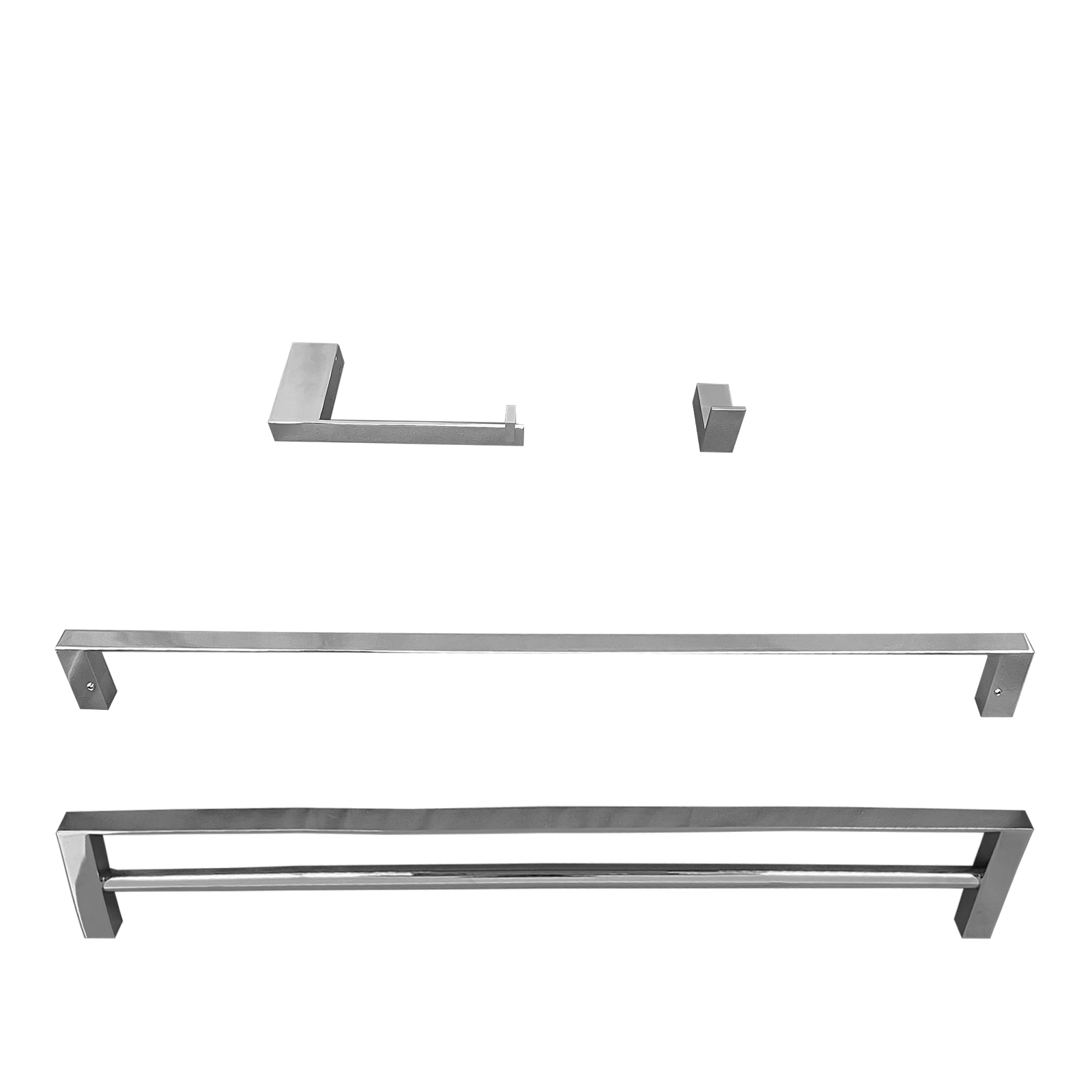 Kit 1 Papeleira 1 Cabide 1 Toalheiro Duplo 60cm 1 Toalheiro 60cm Slim Trendmetais