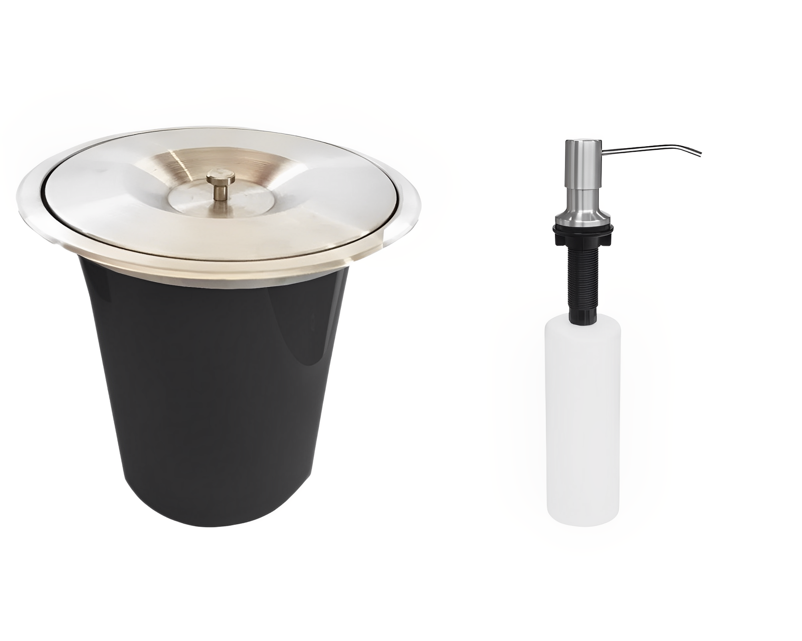 Kit Lixeira Embutir 5l Inox Escovado + Dosador Inox Escovado