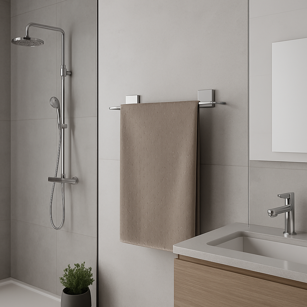 – Design uniforme e elegante para harmonizar todos os acessórios do banheiro;