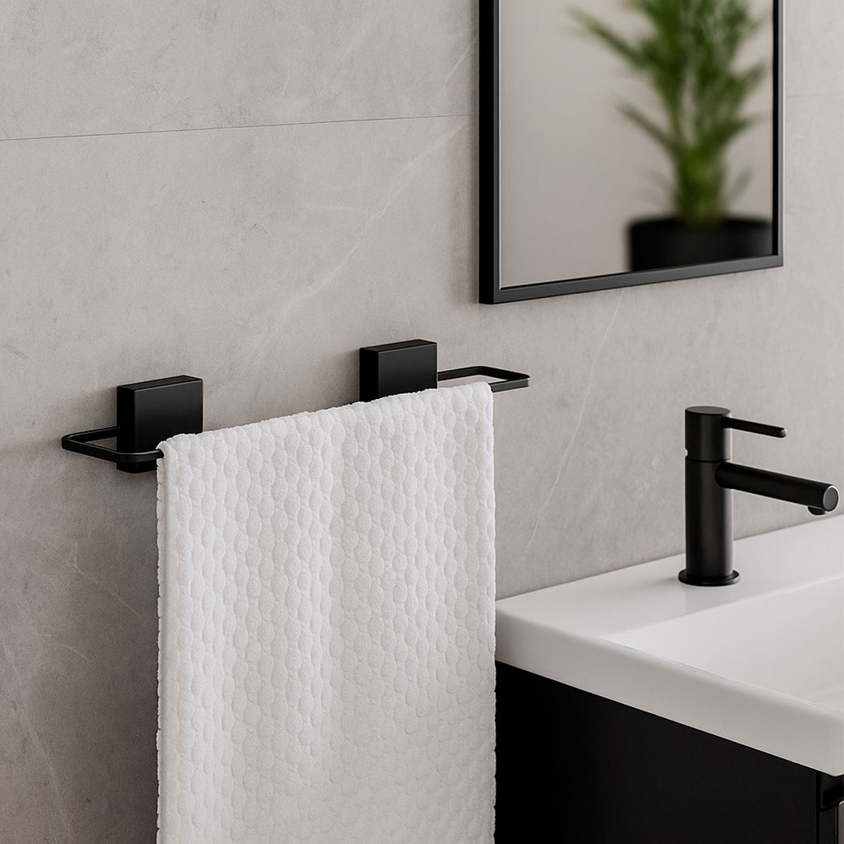 Tenha um banheiro organizado e cheio de estilo com o Kit organizador adesivo Fixare preto fosco, ideal para quem busca qualidade e design contemporâneo.