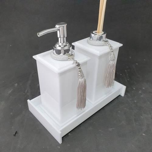 1 Saboneteira liquida em acrílico com válvula ABS Cromada e pingente decorativo.