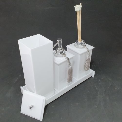 Conheça a nossa linha de acessórios para banheiros. Tudo confeccionado com acrílico cast de primeira qualidade. Altamente durável.