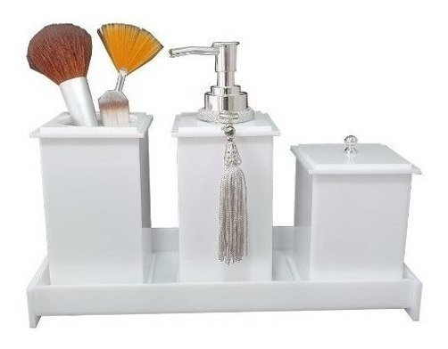 Kit Potes Em Acrílico Para Banheiro 4 Pçs Luxo K15br5 Branco