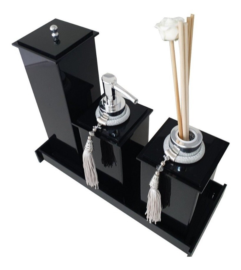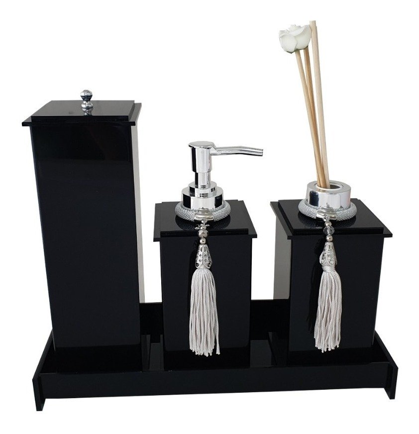 Kit Potes Em Acrílico Para Banheiro 4 Pçs Luxo K15pt2 Preto