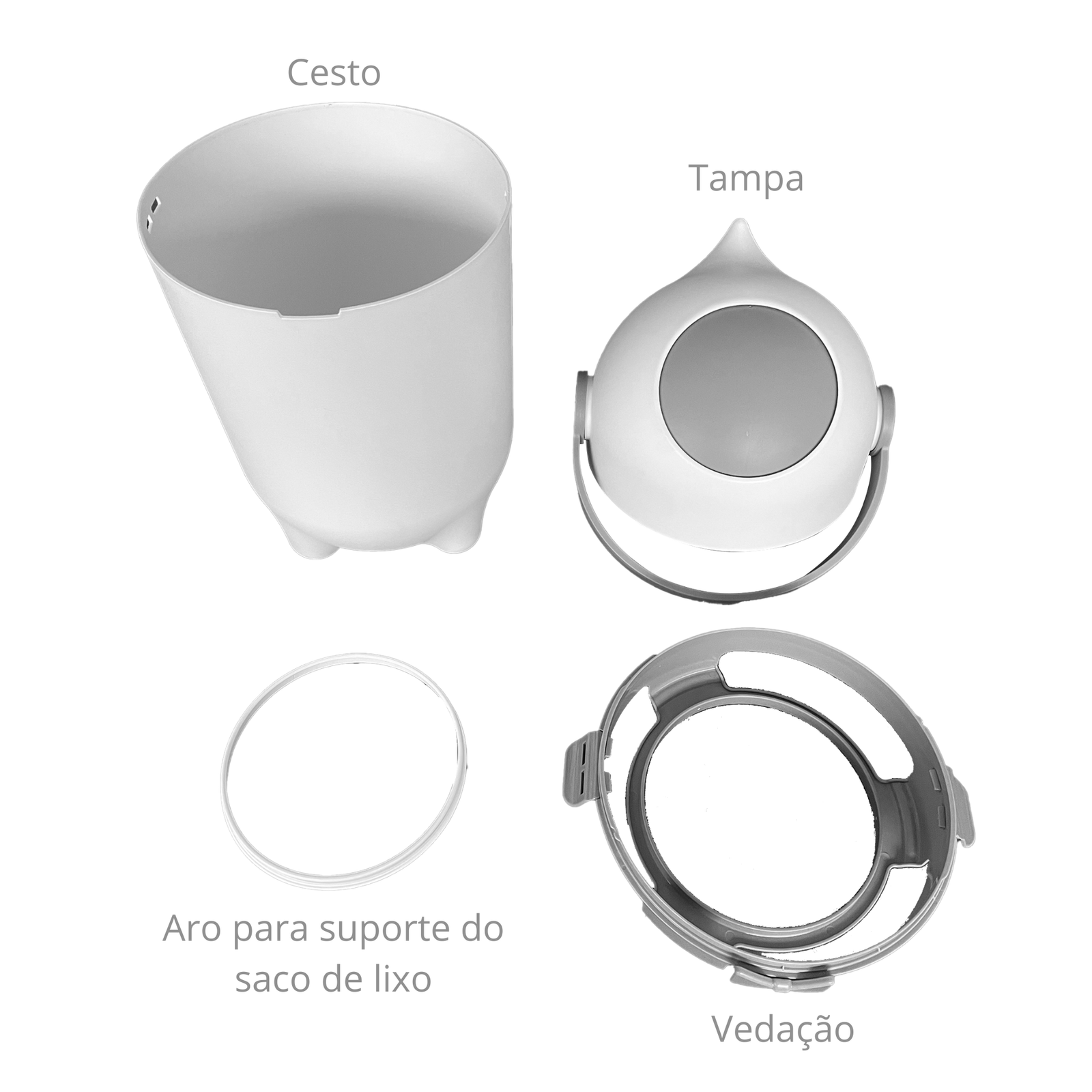 A tampa possui um fechamento giratório com vedação que sela os cheiros e inibe a proliferação de bactérias e vírus.