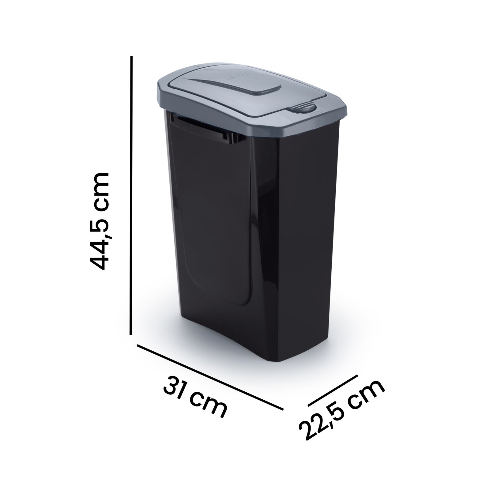 - Características Adicionais: Abas laterais que se encaixam (para unir lixeiras), Acionamento através de um leve toque.