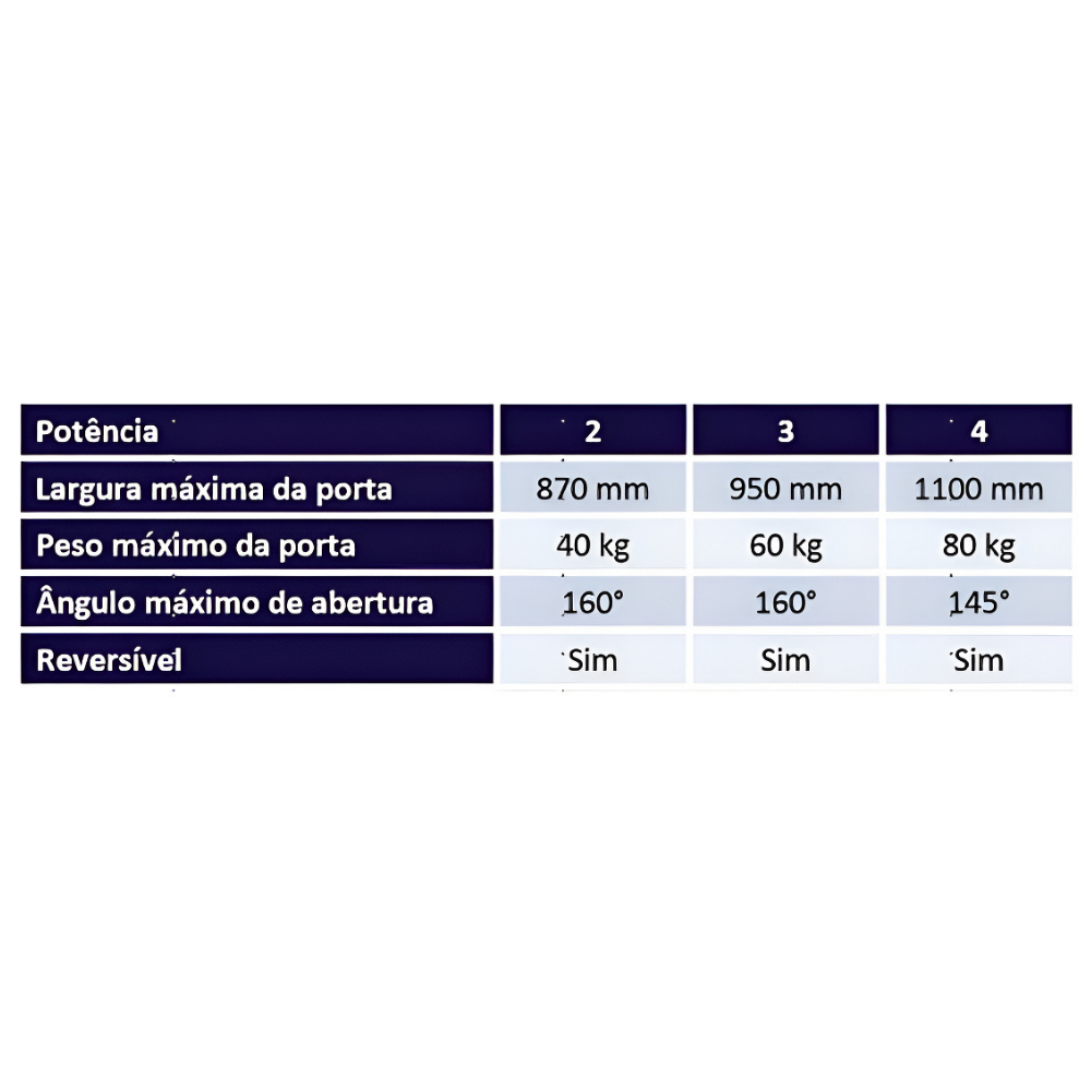 – Ajuste a potência conforme a necessidade de fechamento da porta, garantindo mais eficiência e durabilidade ao produto.