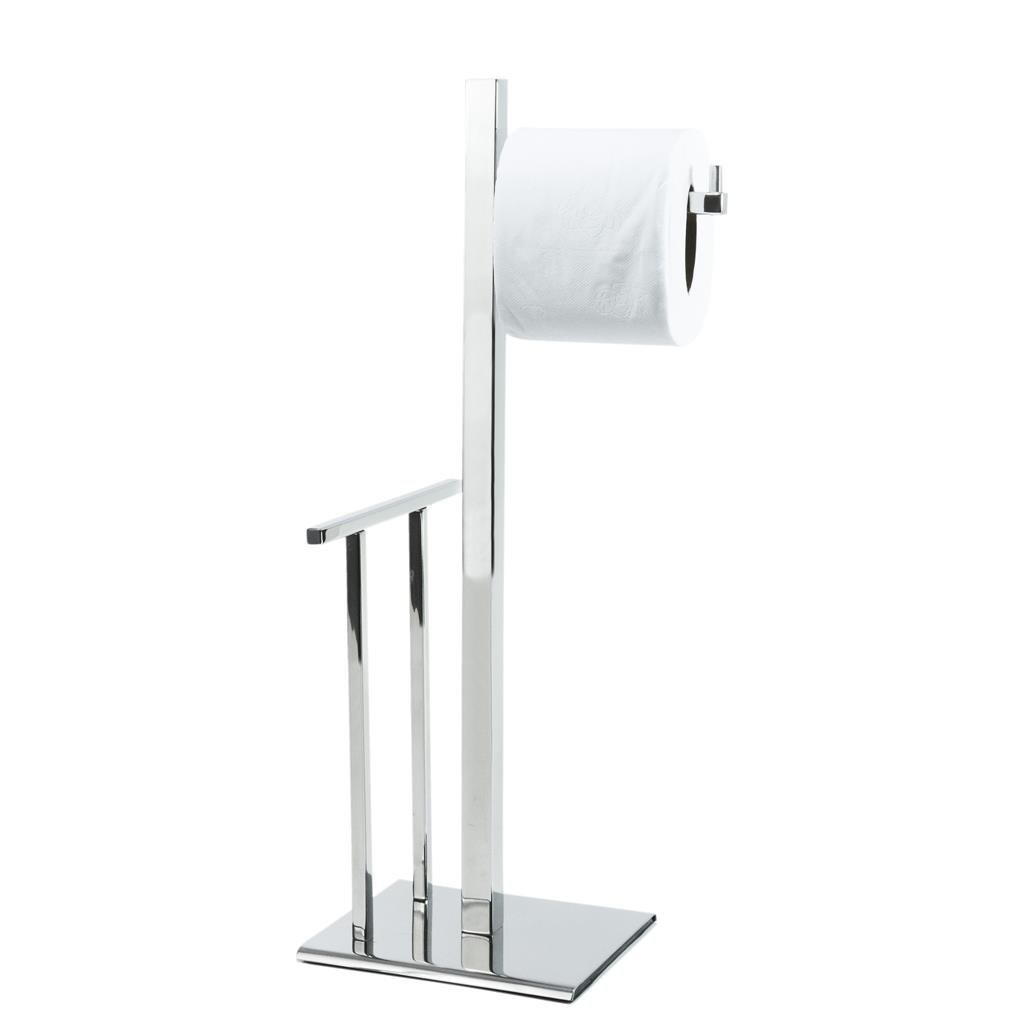 Organize com elegância: papeleira de chão inox com revisteiro, base emborrachada e design moderno. Solução funcional e durável para o seu banheiro.