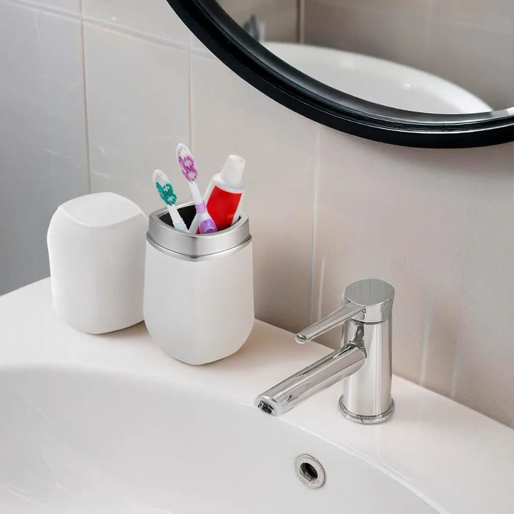 O Porta Escovas e Pasta Conceito da Arthi combina funcionalidade e design sofisticado. Fabricado em Aço Escovado, ele confere um visual premium à bancada, enquanto a tampa garante a higiene essencial, protegendo as escovas de respingos e poeira.
