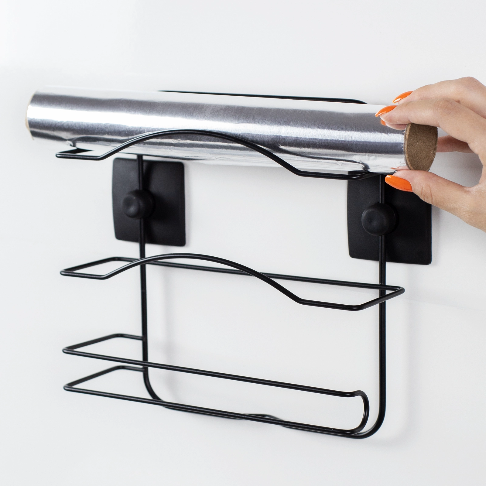 - Organização 3 em 1: Projetado para armazenar o papel-toalha (na haste inferior), o papel alumínio e o filme de PVC (plástico filme) nos compartimentos superiores, otimizando o espaço da sua cozinha.