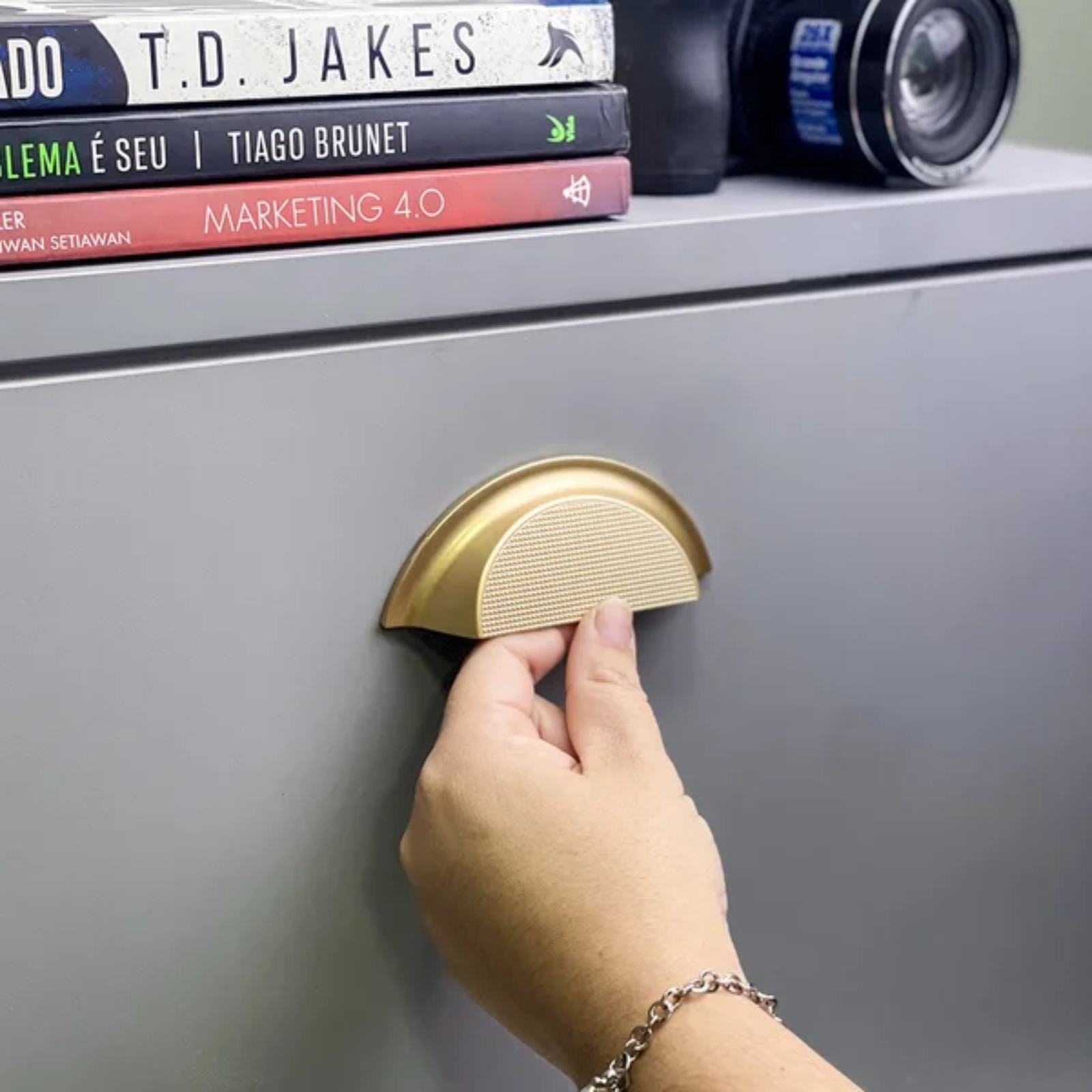 Versátil, ideal para gavetas, portas de armários e outros móveis.