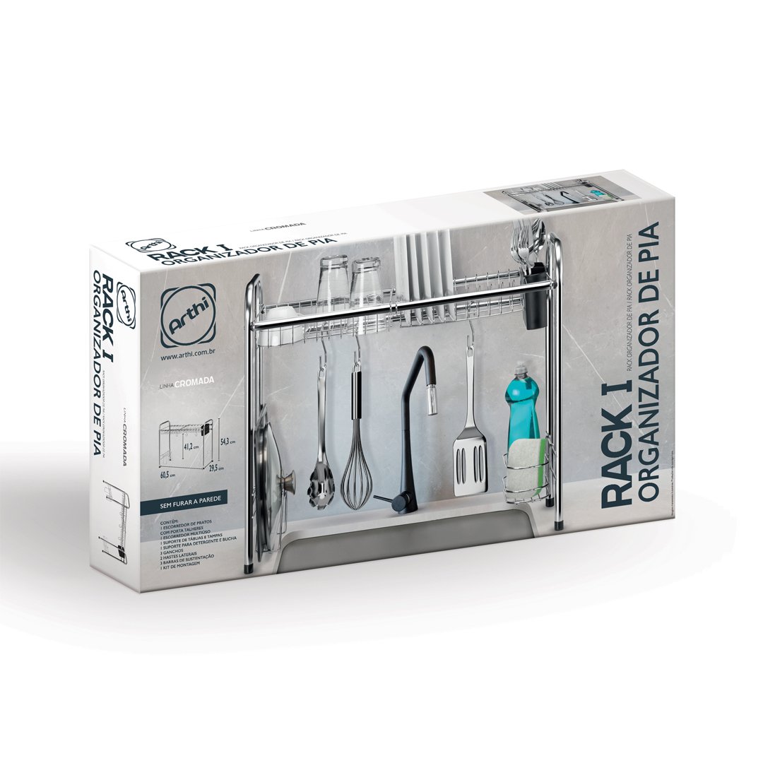 Rack 1 Arthi Cromado (1403) – Organizador Vertical Acima da Pia