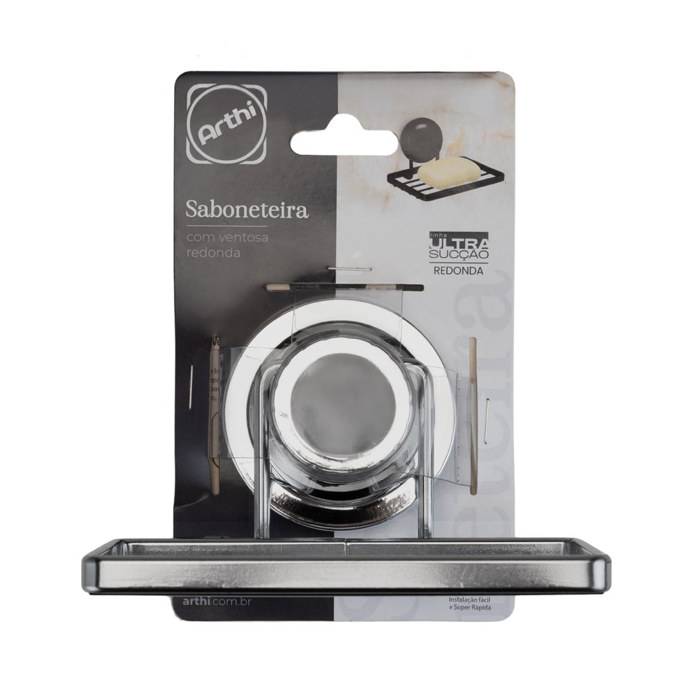 A Saboneteira Redonda Arthi oferece uma solução elegante e funcional para o box ou pia, eliminando a necessidade de furar a parede. Sua instalação é feita através de um sistema de Fixação por Sucção seguro, permitindo a instalação rápida em superfícies lisas e a fácil reposição.