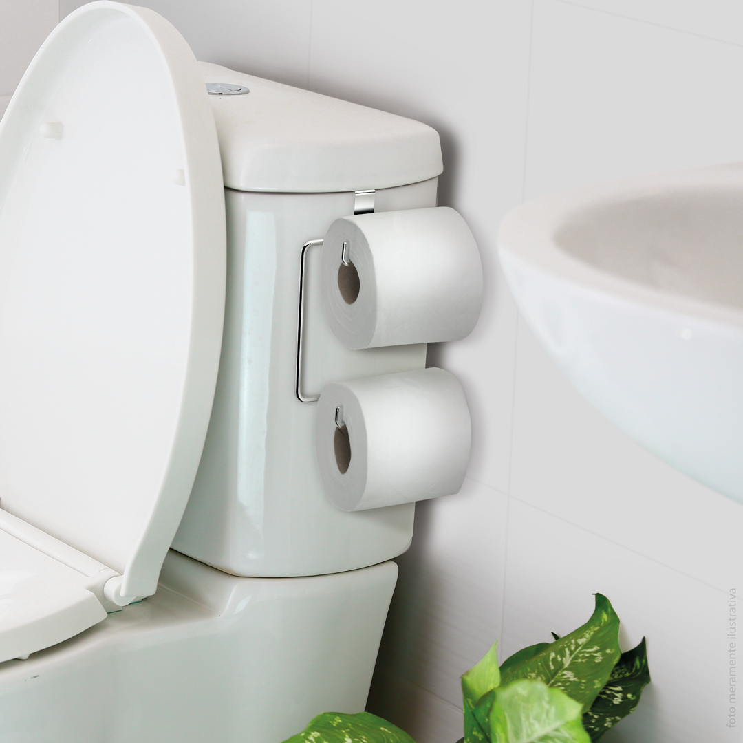 - Capacidade Dupla: Suporta dois rolos de papel higiênico simultaneamente (um em uso e um de reserva), garantindo praticidade.