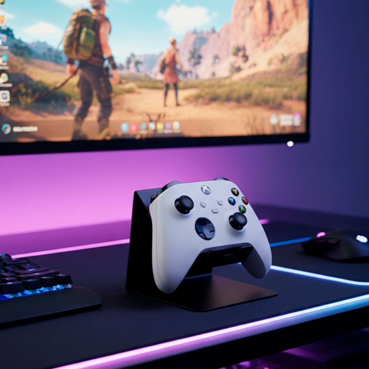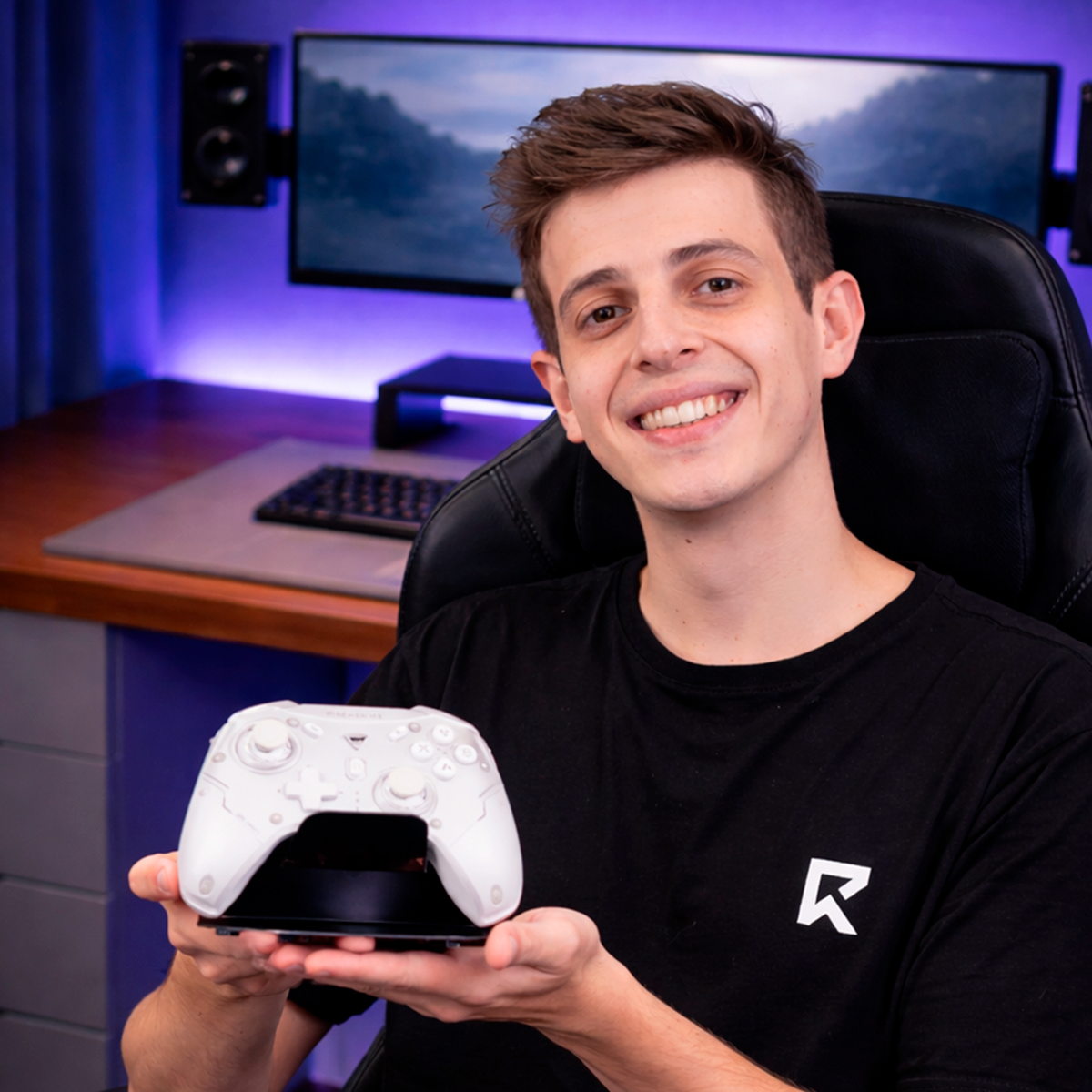 Compacto e funcional, é ideal para setups gamers, mantendo o espaço mais organizado e seus acessórios sempre prontos para uso.