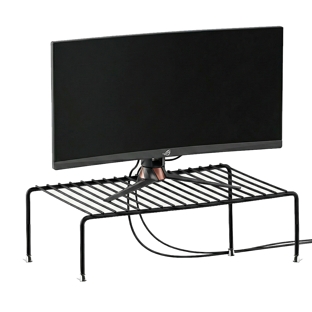 Produzido em aramado resistente e com acabamento preto fosco, ele oferece sustentação firme para o monitor, ajudando a organizar a mesa e proporcionando uma visualização mais confortável.