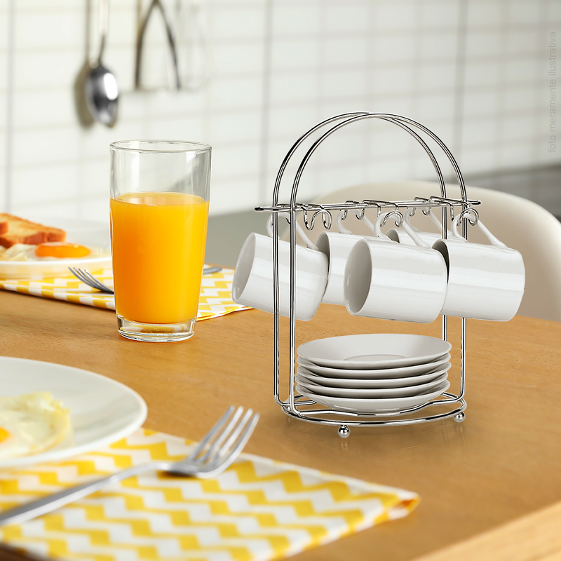 - Proteção: Mantém as xícaras suspensas, evitando o contato direto com a superfície e ajudando na secagem.