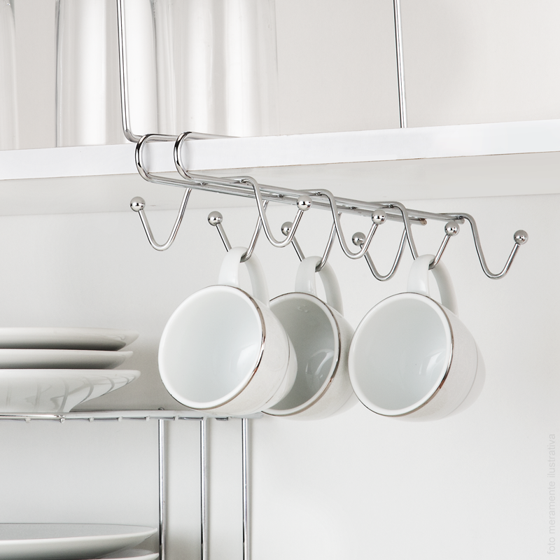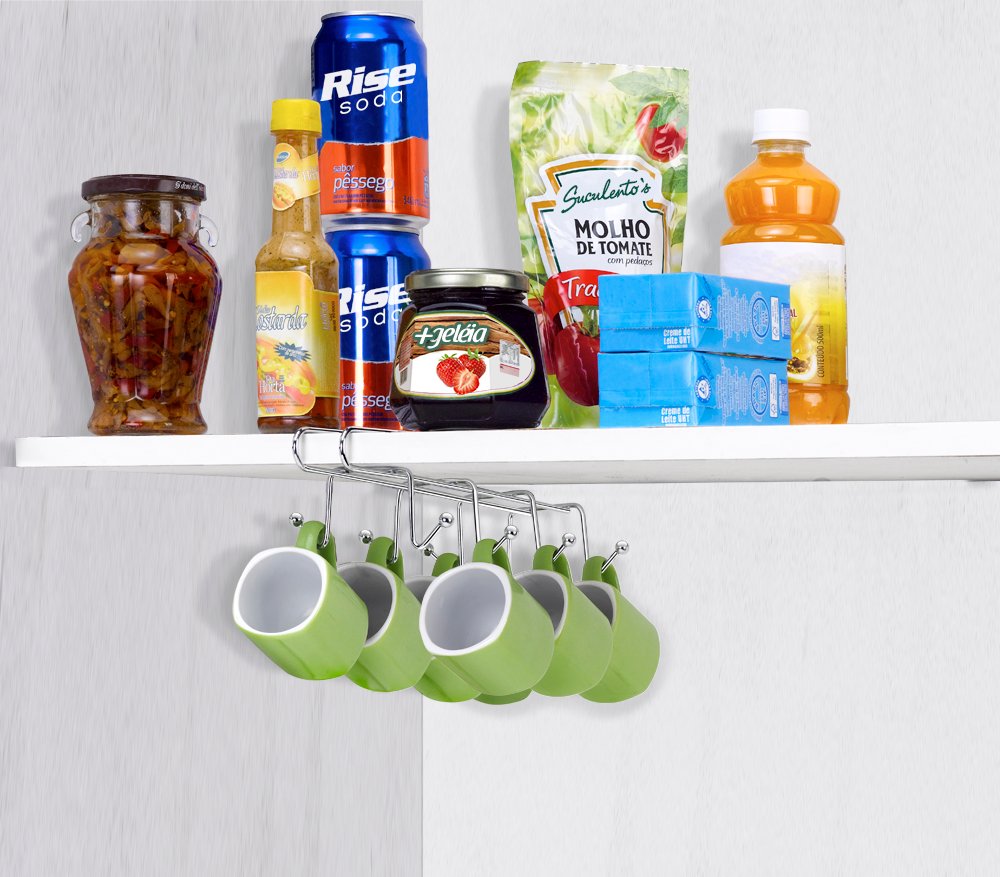 O Suporte Para Xícaras de Encaixar da Arthi é a solução perfeita para organizar e aumentar a área útil de seu armário ou prateleira. Seu design inteligente permite a instalação por encaixe, sem a necessidade de ferramentas ou furos, utilizando o espaço vertical sob as prateleiras.