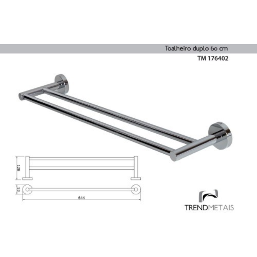 O Toalheiro Redondo Duplo 60 cm da TrendMetais é uma peça com excelente acabamento e durabilidade, perfeito para banheiros e lavabos.