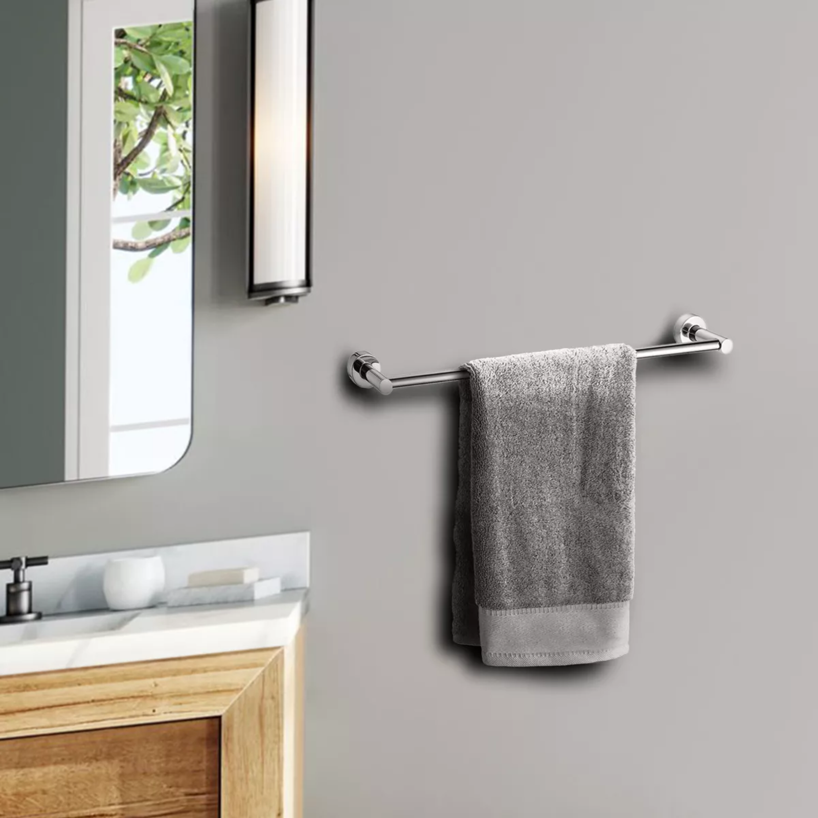 Este toalheiro possui 30 cm de comprimento e é ideal para pendurar toalha de rosto, mantendo o ambiente organizado.