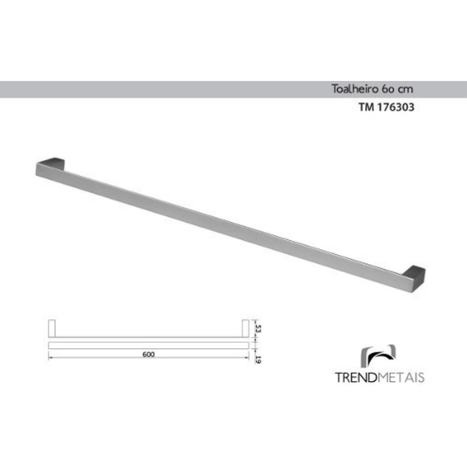 O Toalheiro Slim 60cm da TrendMetais é uma peça com excelente acabamento e durabilidade, perfeito para banheiros e lavabos.