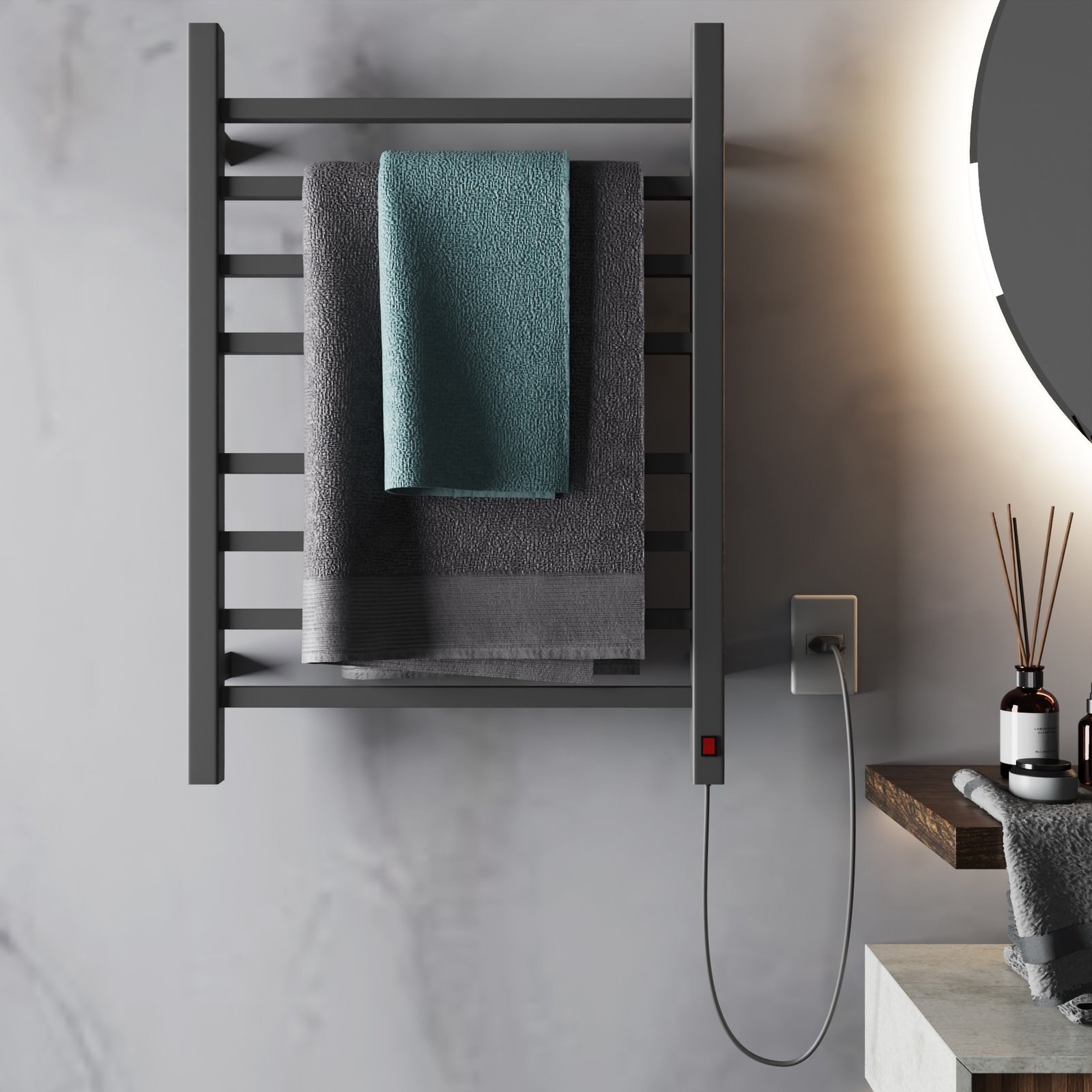 • Conforto: Toalhas quentinhas para um banho de hotel em casa.
