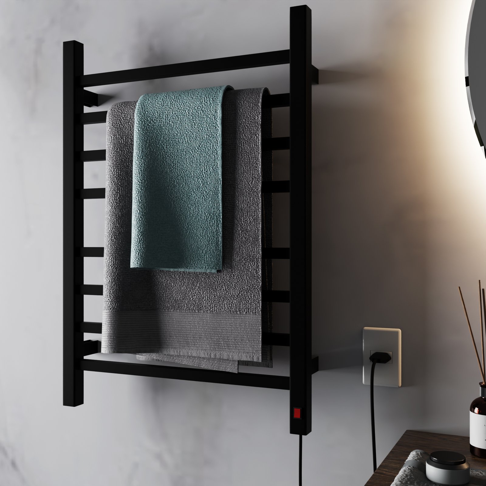• Conforto: Toalhas quentinhas para um banho de hotel em casa.