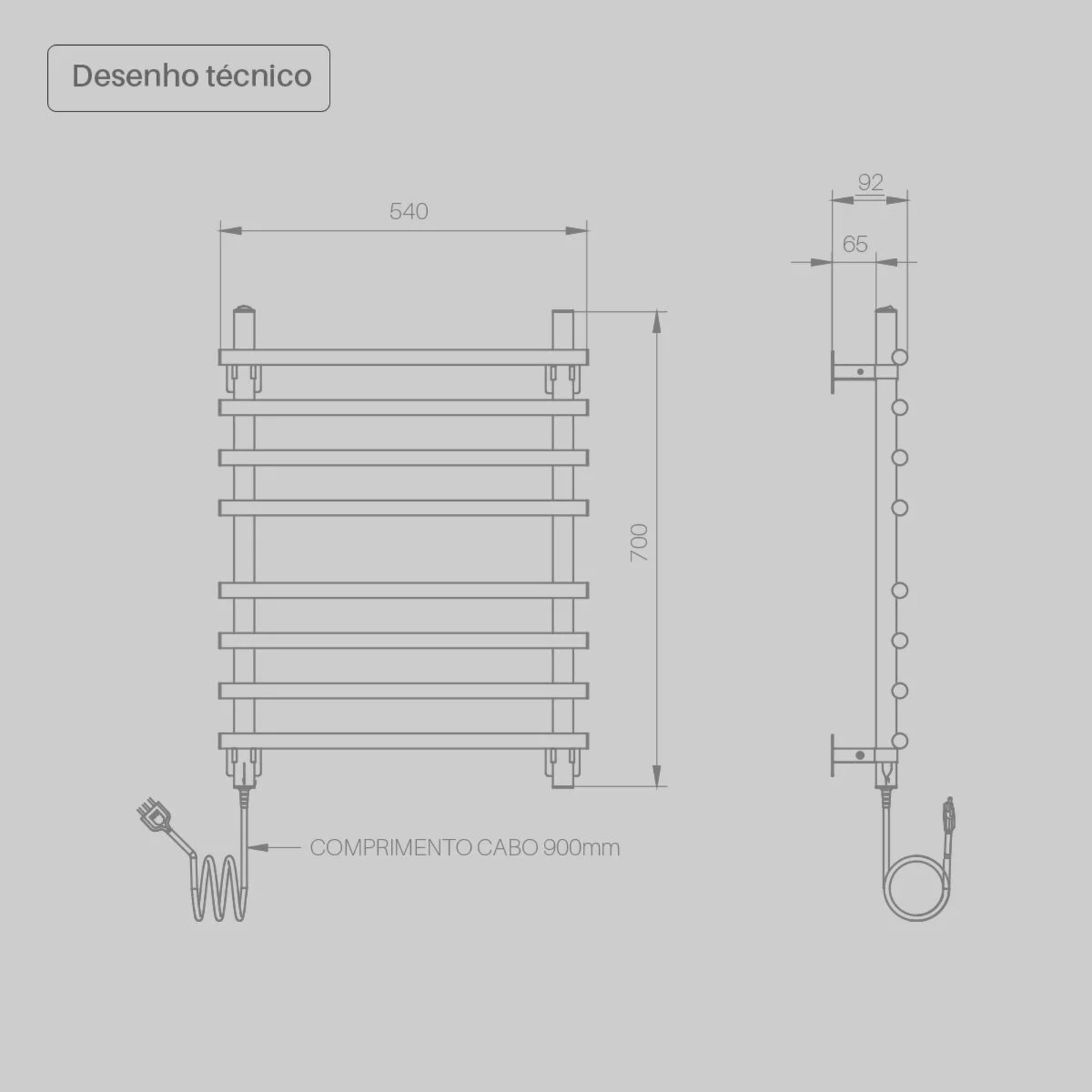 Toalheiro Térmico Quadrado Preto Inox Kazalinda | Timer e Temp. Touch | Bivolt