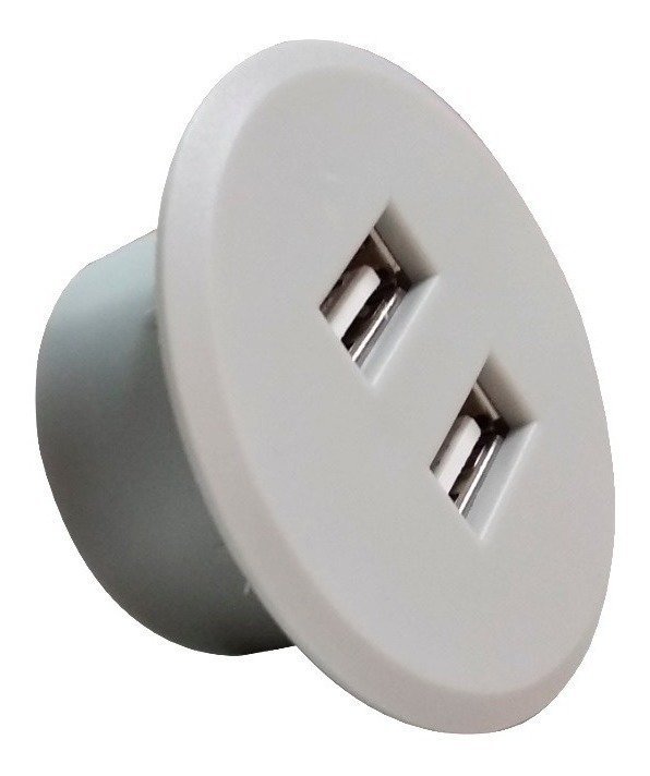 Tomada Pop C/ 2 Entradas Usb Embutir Mesa Sofá Cinza Redonda – Cinza